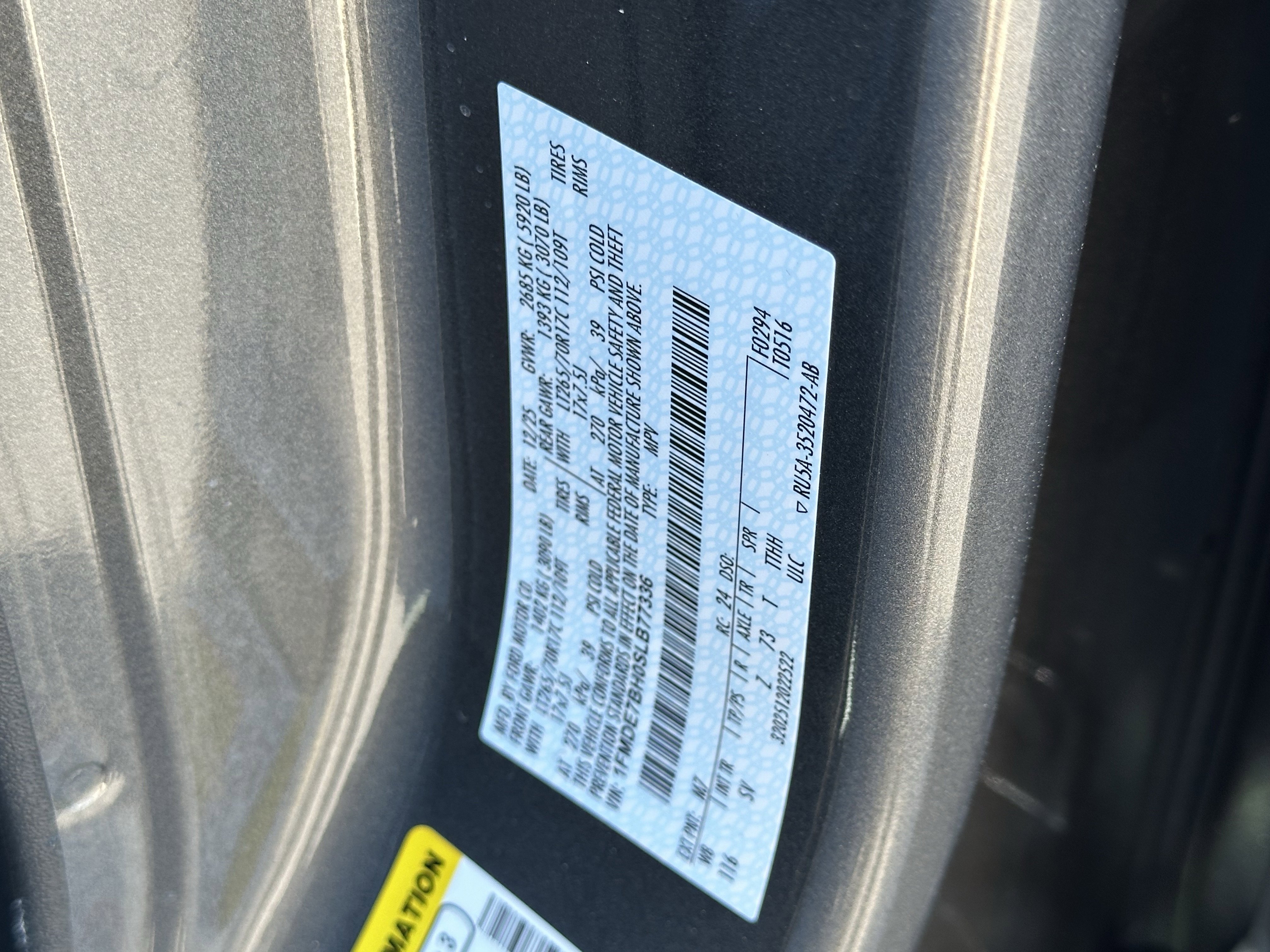 • VIN # 1FMDE7BH0SLB77336