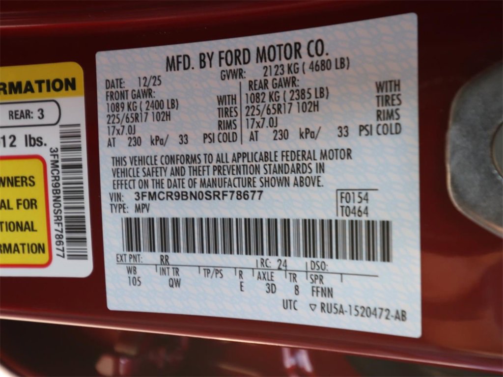 Ruby Red Metallic Tinted Clearcoat 2025 Ford Bronco Sport Big Bend 4WD 8-Speed Automatic 1.5L EcoBoost