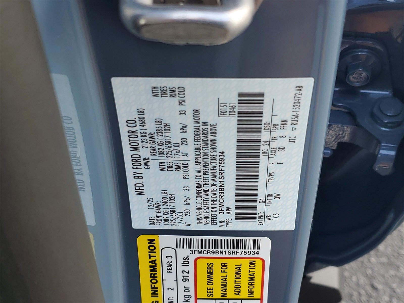 Dealer Discount of $3,028 off MSRP 4-Wheel Disc Brakes, 6 Speakers, ABS brakes, Air Conditioning, Alloy wheels, AM/FM radio: SiriusXM, AM/FM Stereo, Auto High-beam Headlights, Automatic temperature control, Brake assist, Cloth w/Easy-to-Clean Front Bucket Seats, Compass, Convenience Package, Delay-off headlights, Driver door bin, Driver vanity mirror, Dual front impact airbags, Dual front side impact airbags, Electronic Stability Control, Emergency communication system: SYNC 4 911 Assist, Equipment Group 200A, Four wheel independent suspension, Front anti-roll bar, Front Bucket Seats, Front Center Armrest, Front Driver/Passenger Seat Back Map Pockets, Front License Plate Bracket, Front reading lights, Fully automatic headlights, Heated 8-Way Power Driver's Seat, Heated door mirrors, Illuminated entry, Knee airbag, LED Fog Lamps, Low tire pressure warning, Occupant sensing airbag, Outside temperature display, Overhead airbag, Overhead console, Panic alarm, Passenger door bin, Passenger vanity mirror, Power door mirrors, Power steering, Power windows, Premium Wrapped Steering Wheel, Radio data system, Rear anti-roll bar, Rear Parking Sensors, Rear reading lights, Rear seat center armrest, Rear window defroster, Rear window wiper, Remote keyless entry, Security system, SiriusXM, Speed control, Speed-sensing steering, Speed-Sensitive Wipers, Split folding rear seat, Steering wheel mounted audio controls, SYNC 4 w/Enhanced Voice Recognition, Tachometer, Telescoping steering wheel, Tilt steering wheel, Traction control, Trip computer, Universal Garage Door Opener (UGDO), Variably intermittent wipers, Wheels: 17 Carbonized Gray-Painted Aluminum.