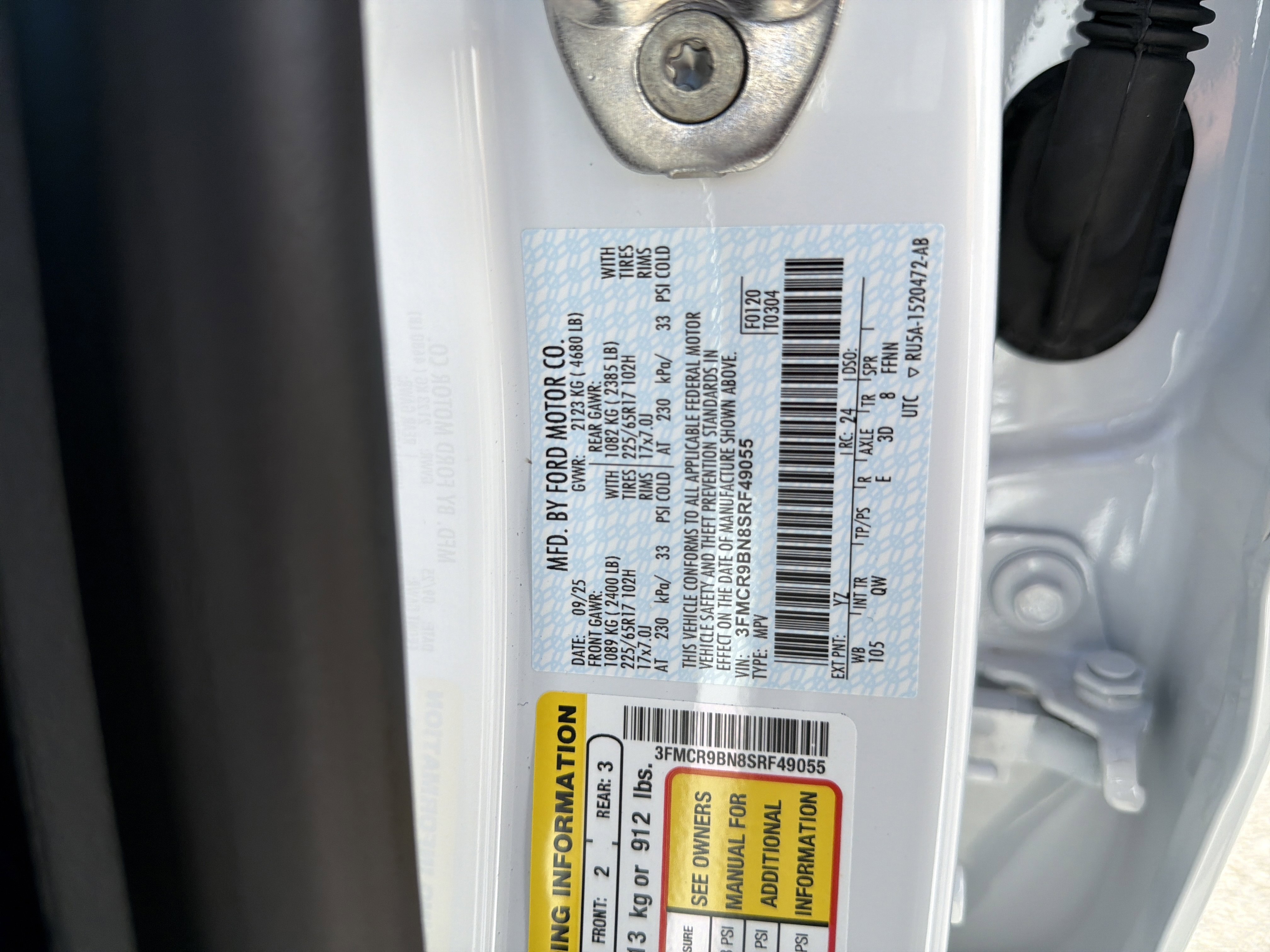 • VIN # 3FMCR9BN8SRF49055