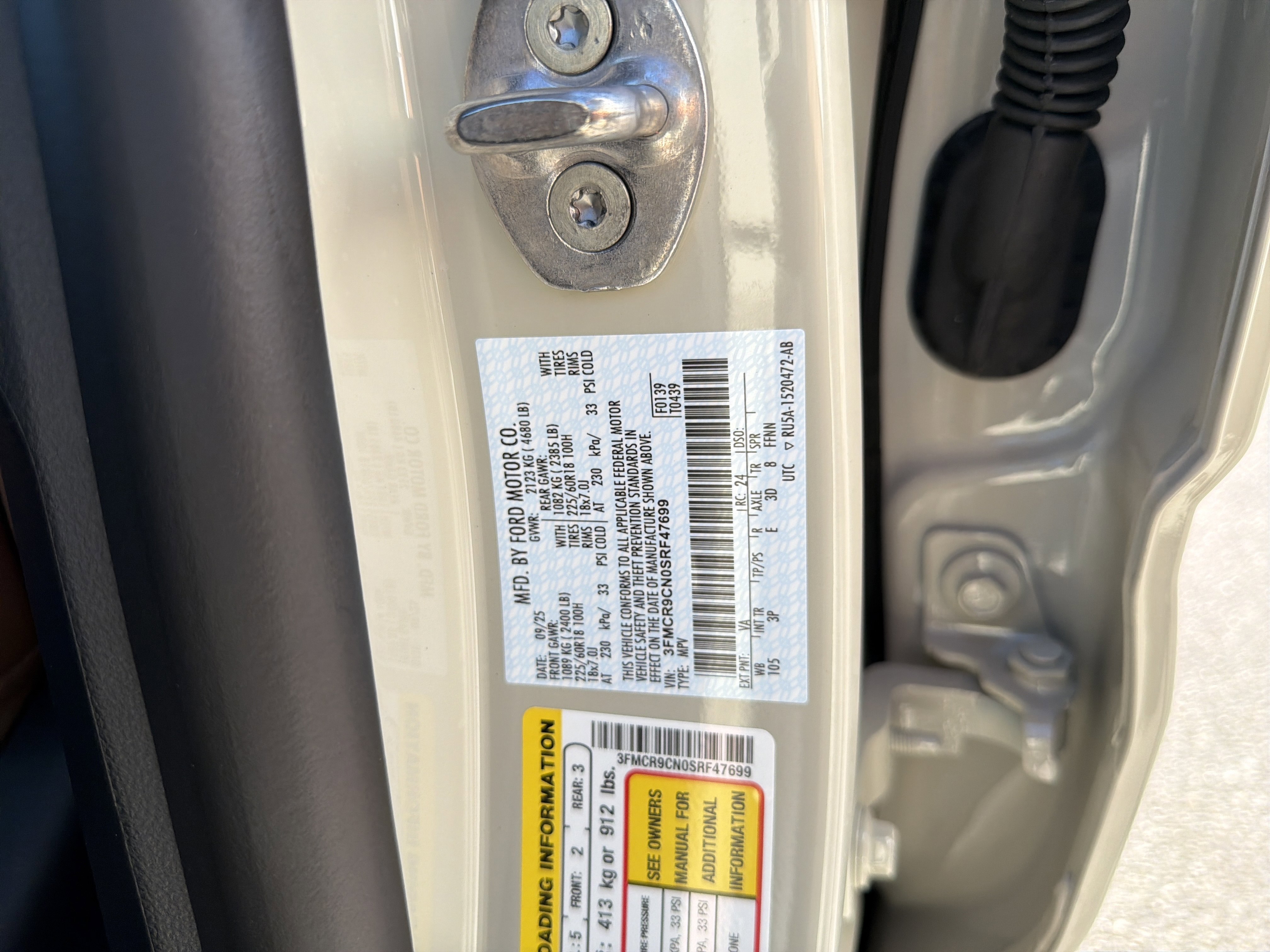 • VIN # 3FMCR9CN0SRF47699