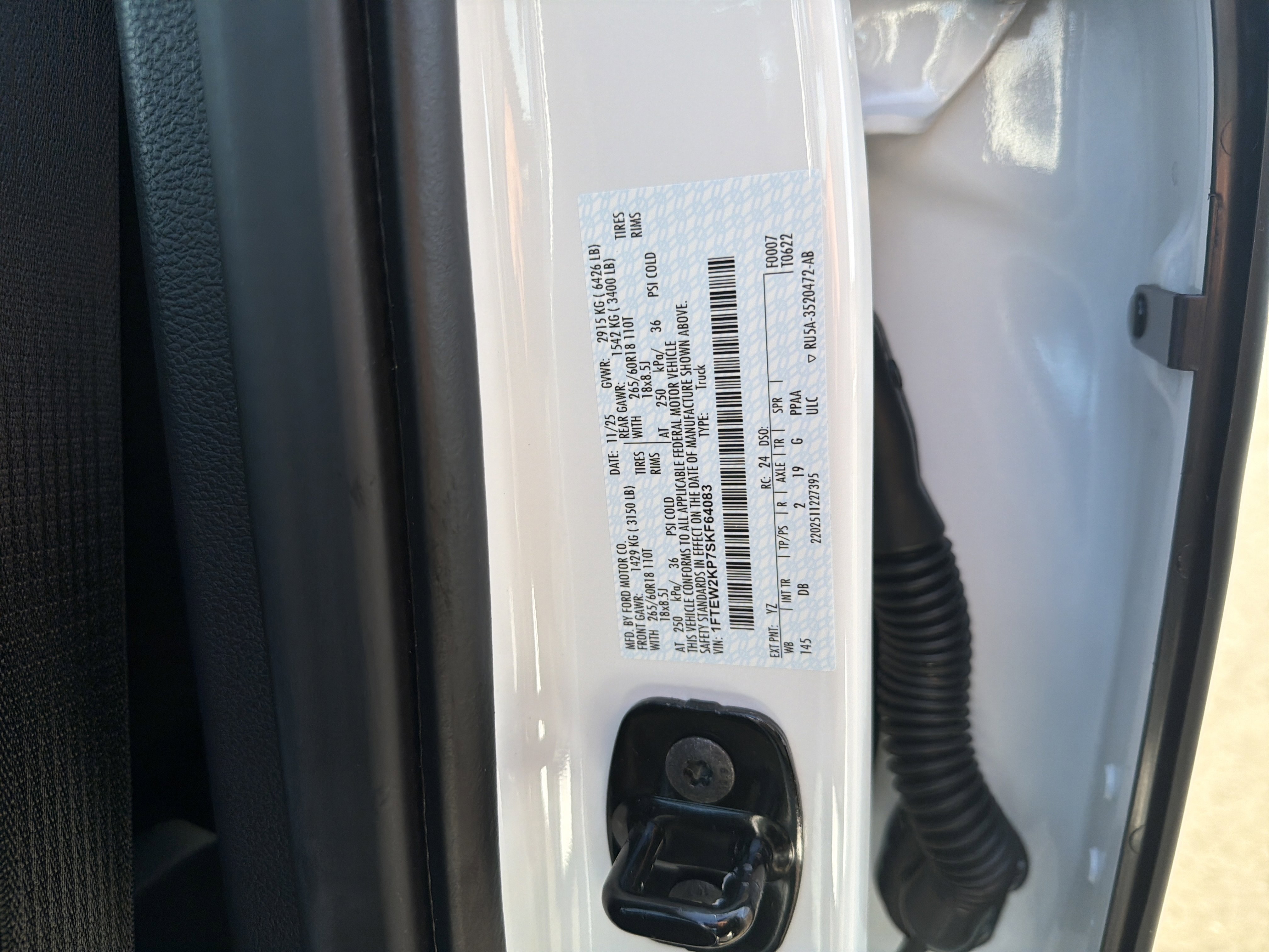 • VIN # 1FTEW2KP7SKF64083