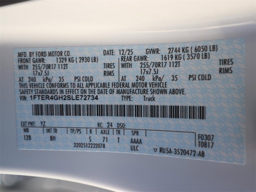 Oxford White 2025 Ford Ranger XLT RWD 10-Speed Automatic EcoBoost 2.3L I4 GTDi DOHC Turbocharged VCT