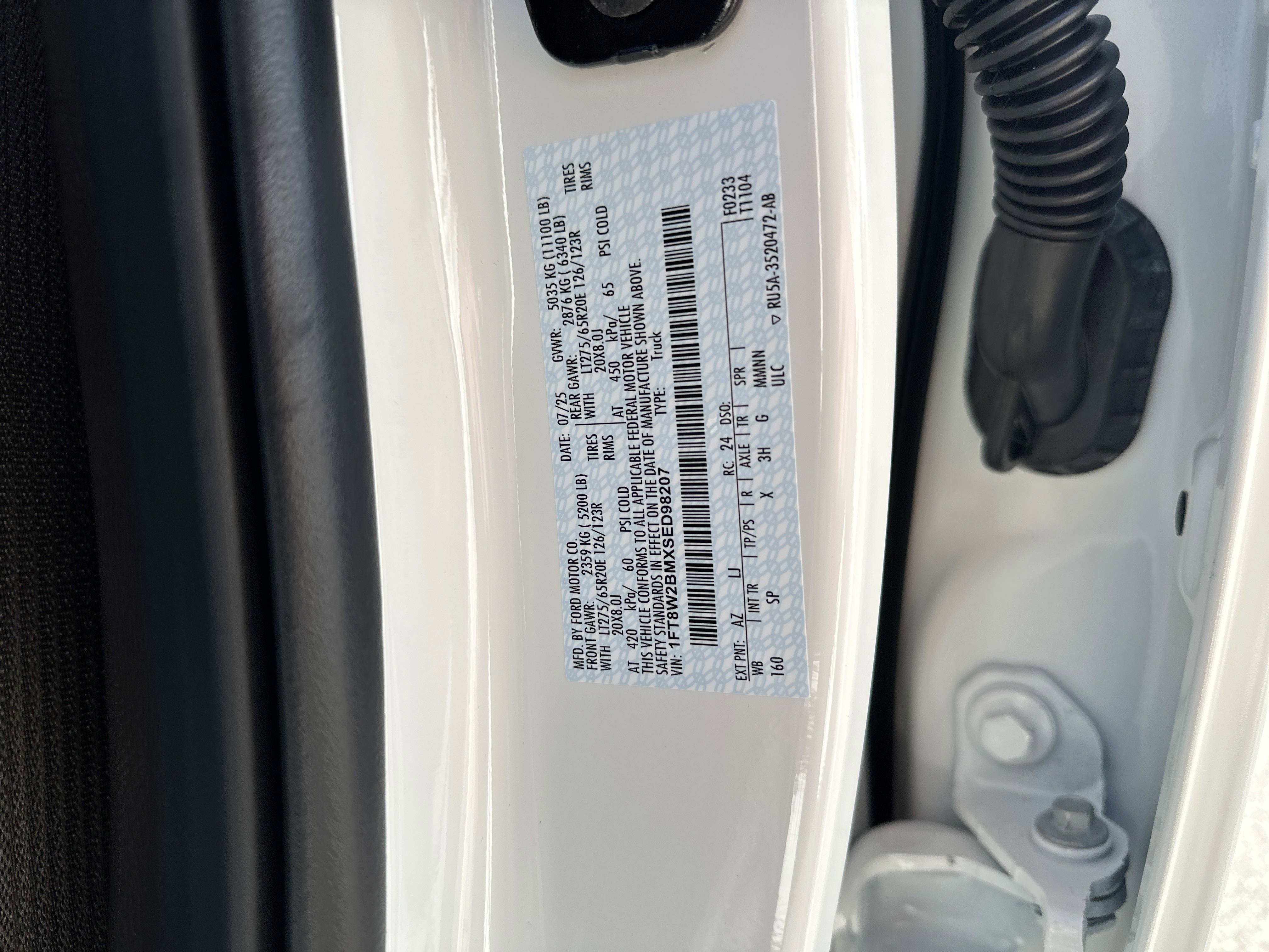 • VIN # 1FT8W2BMXSED98207