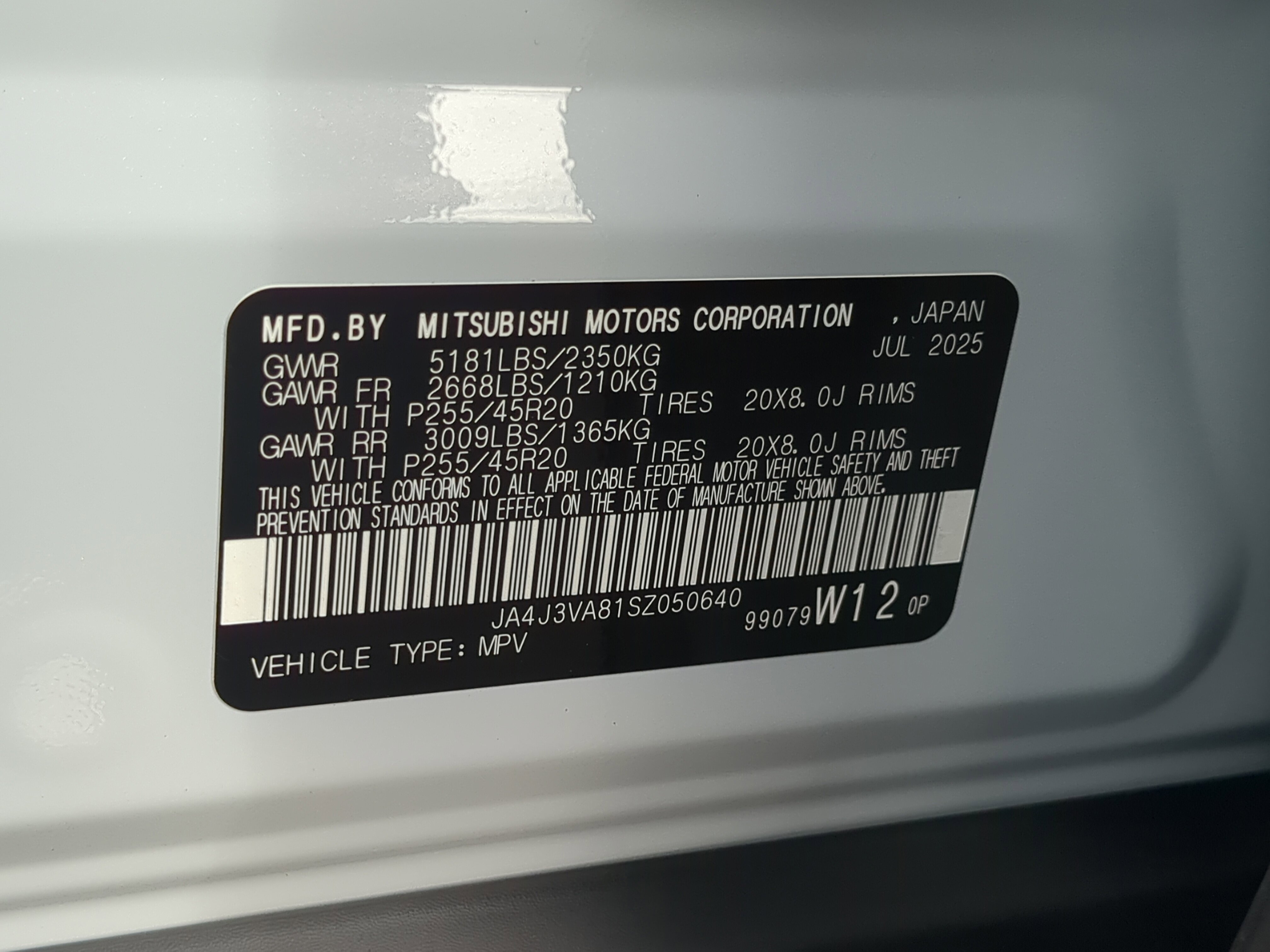 • VIN # JA4J3VA81SZ050640