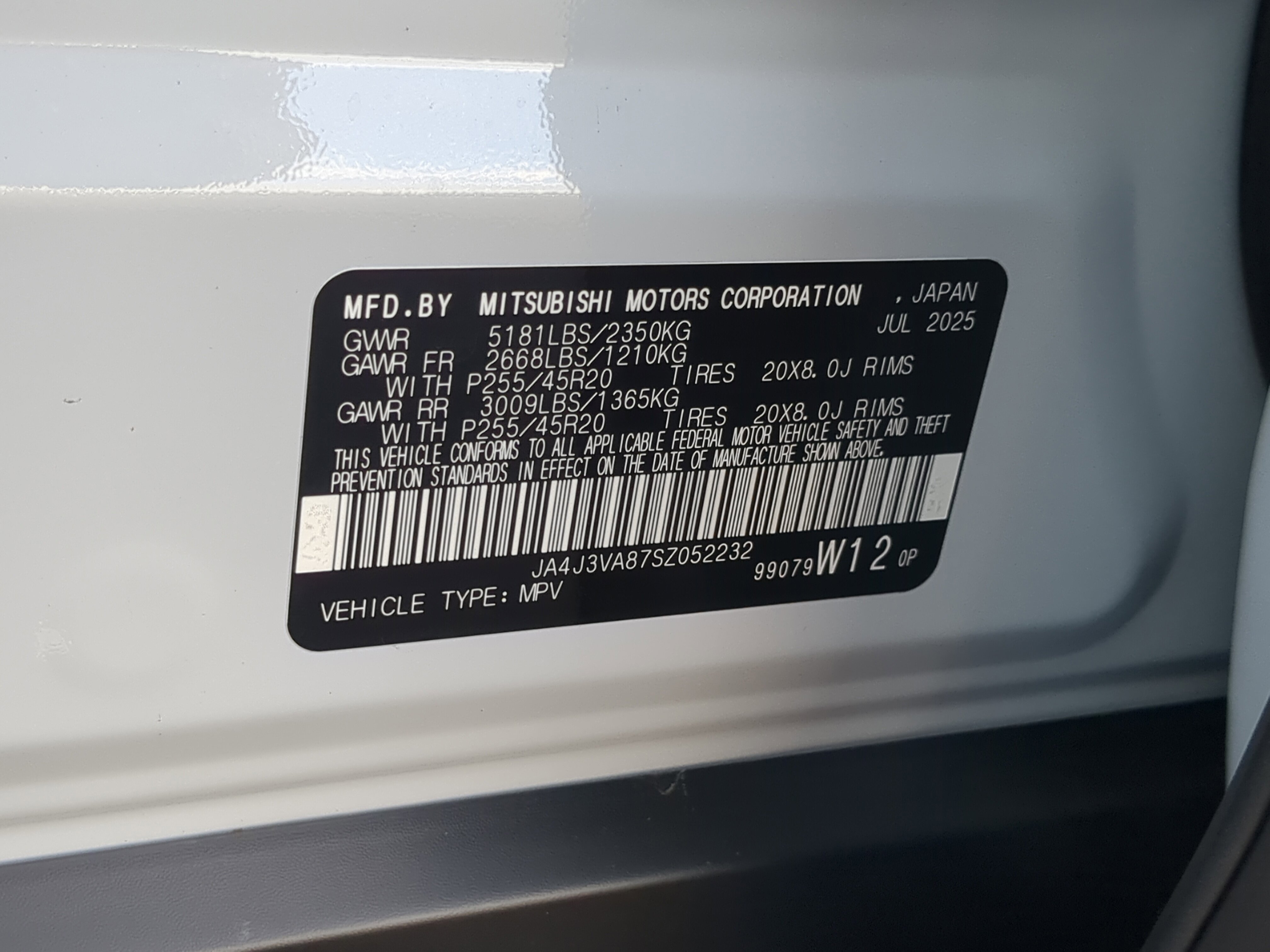 • VIN # JA4J3VA87SZ052232