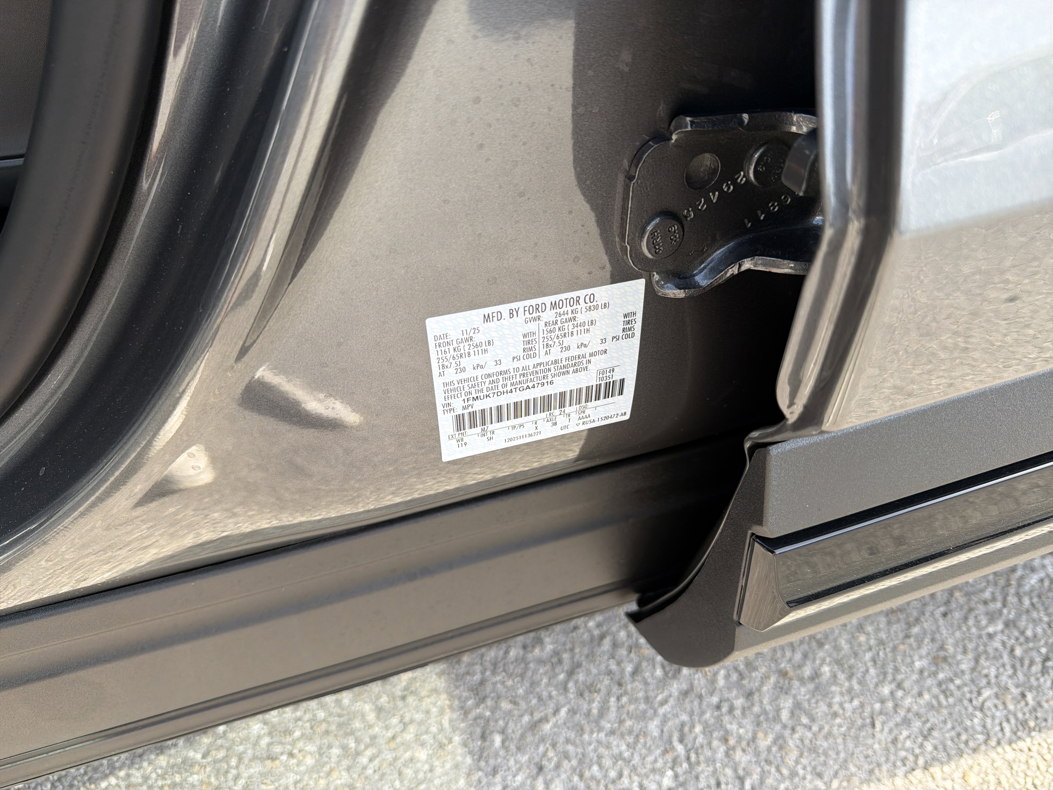 • VIN # 1FMUK7DH4TGA47916