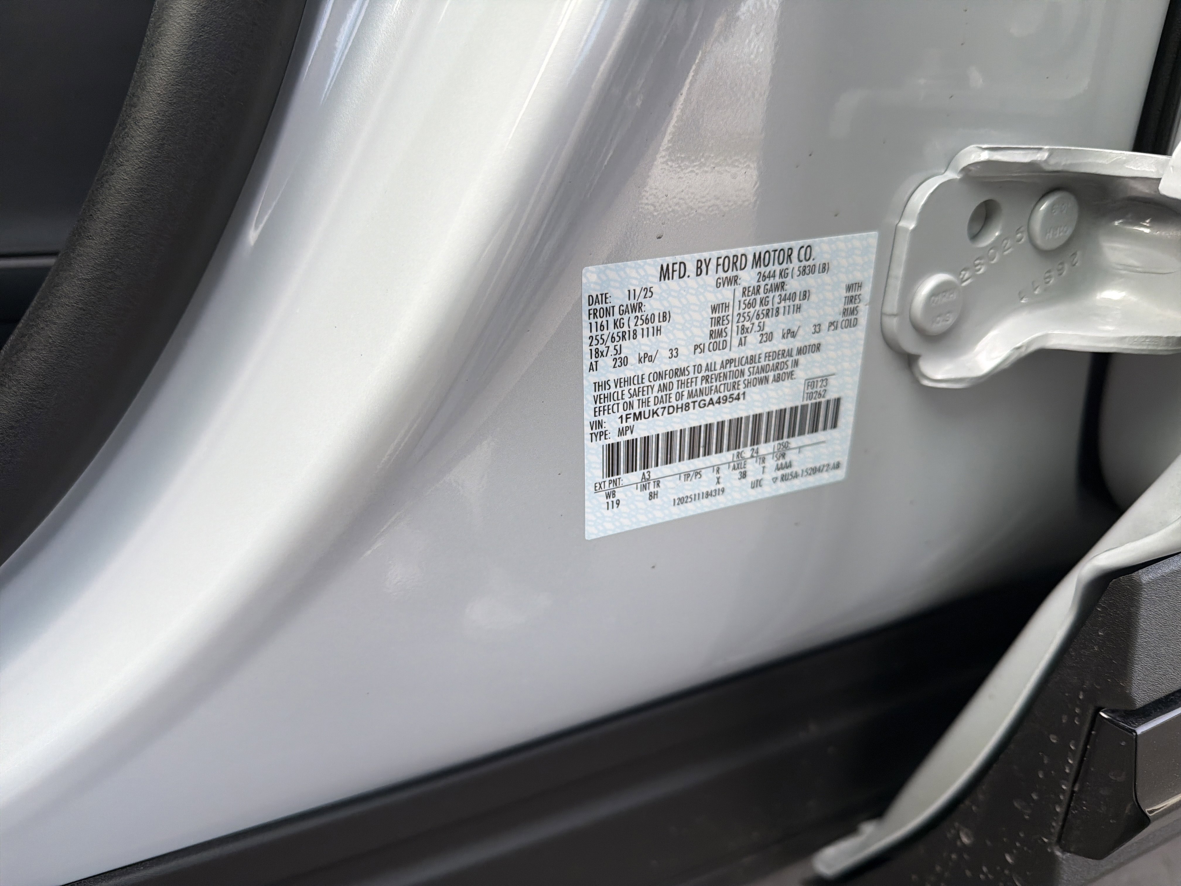 • VIN # 1FMUK7DH8TGA49541