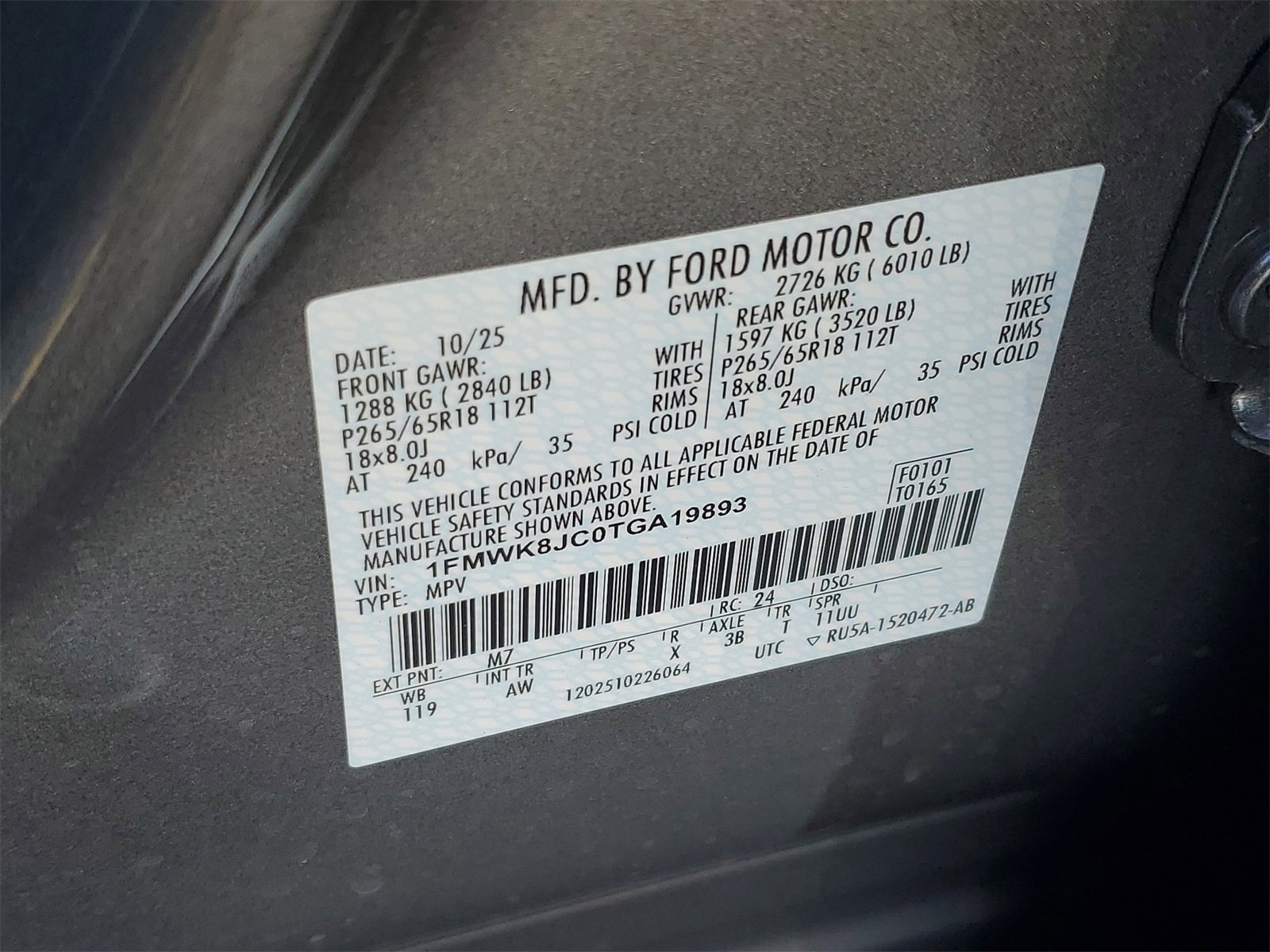 Carbonized Gray Metallic 2026 Ford Explorer Tremor 4WD 10-Speed Automatic 3.0L EcoBoost V6