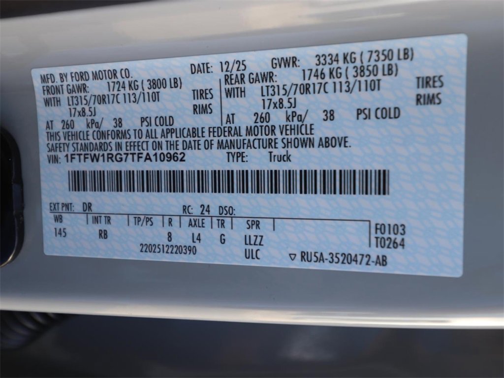 4WD, 17" Cast Aluminum Wheels, Driver's Side SecuriCode Keyless-Entry Keypad, Electronic Locking with 4.10 Axle Ratio, Equipment Group 801A Standard, Ford Connectivity Package (one-Time Purchase - 7 Years), Leather Trimmed Seats, Radio: B&O Unleashed Sound System by Bang & Olufsen, SYNC 4 with Enhanced Voice Recognition, Tough Bed Spray-in Bedliner, Twin Panel Moonroof.