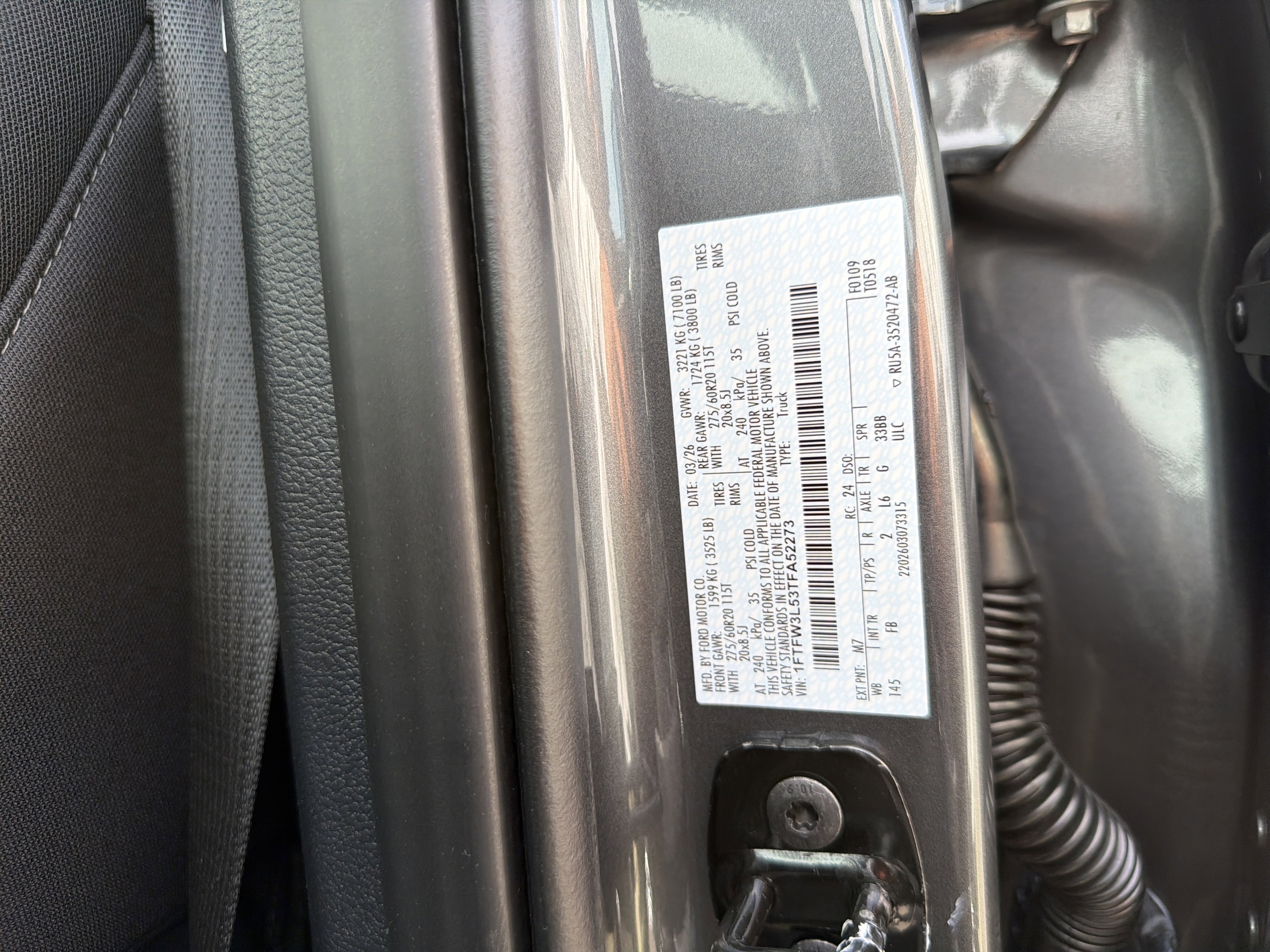 • VIN # 1FTFW3L53TFA52273