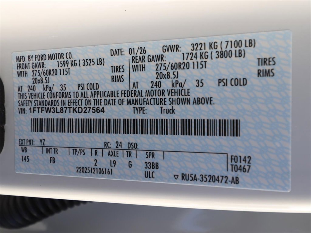 • VIN # 1FTFW3L87TKD27564