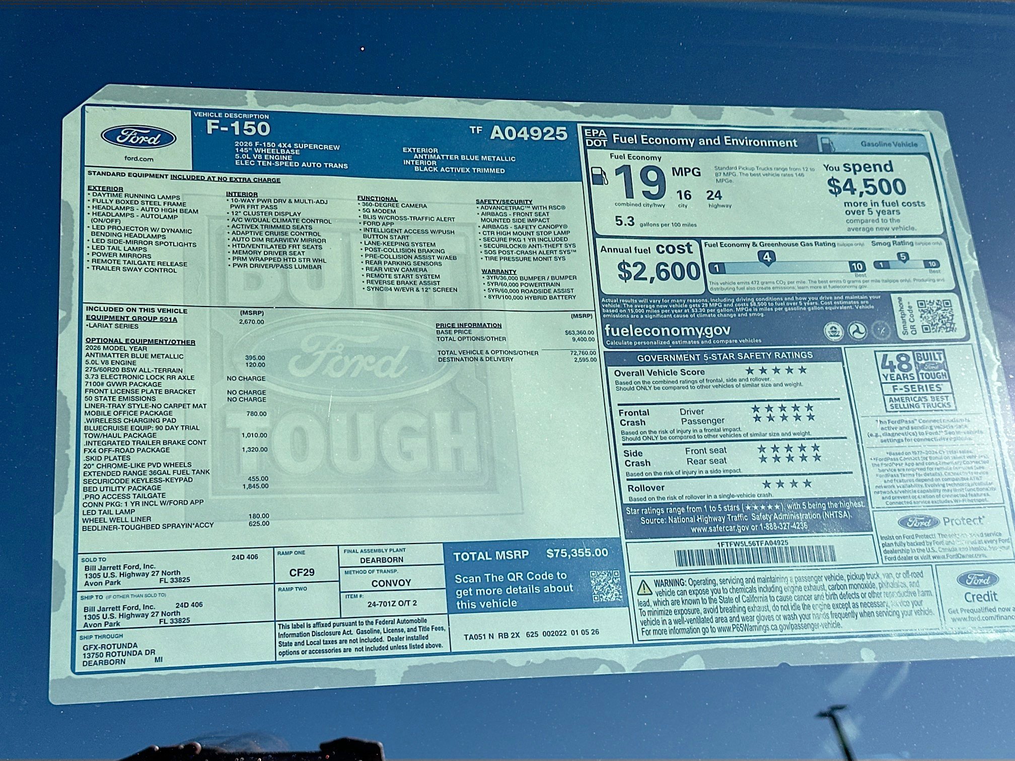 Antimatter Blue Metallic 2026 Ford F-150 Lariat 4WD 10-Speed Automatic 5.0L V8 4WD.