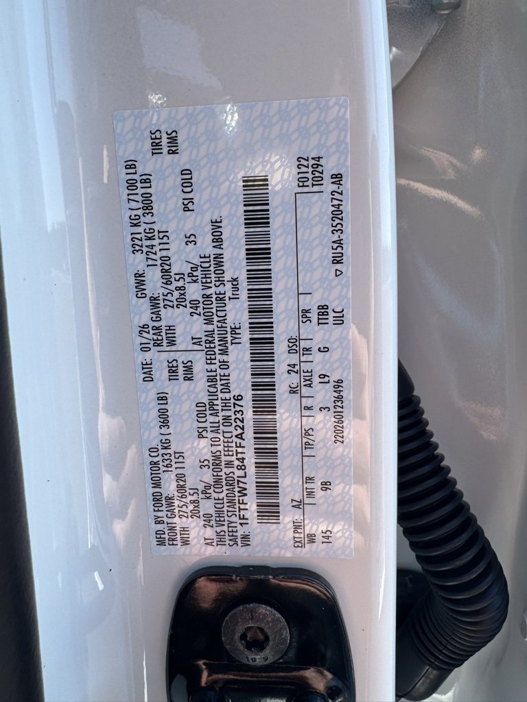 • VIN # 1FTFW7L84TFA22376