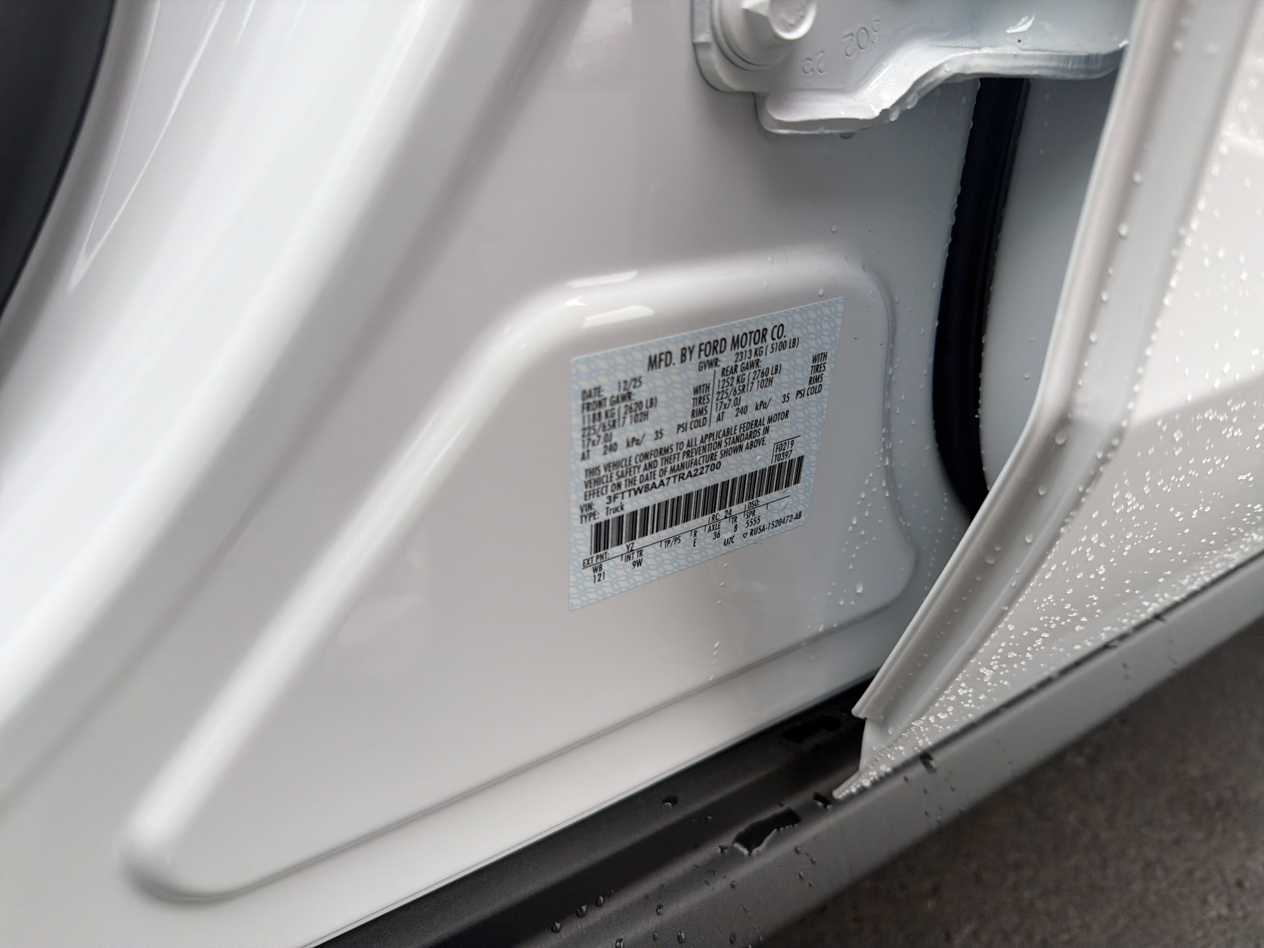 • VIN # 3FTTW8AA7TRA22700
