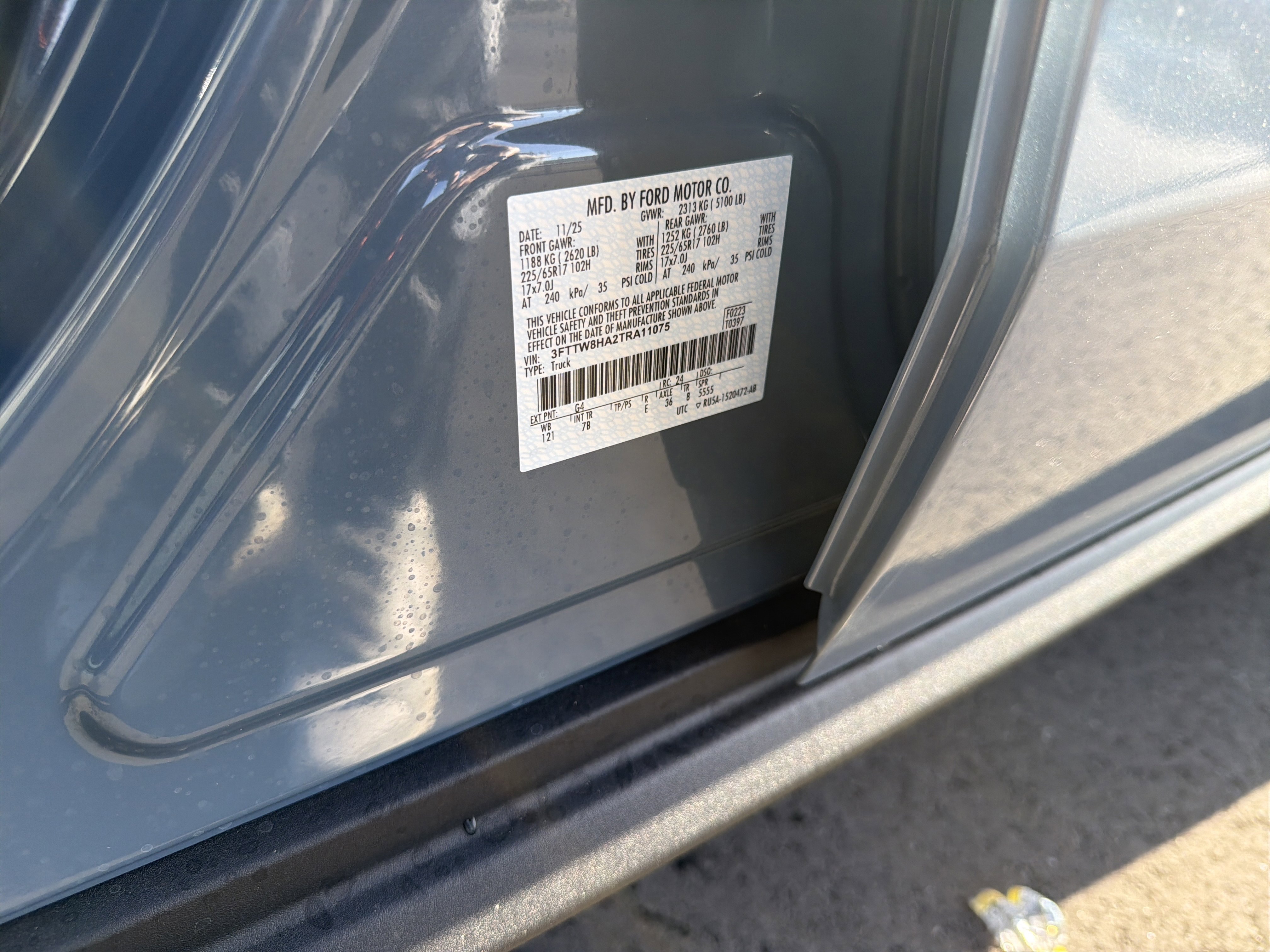 • VIN # 3FTTW8HA2TRA11075
