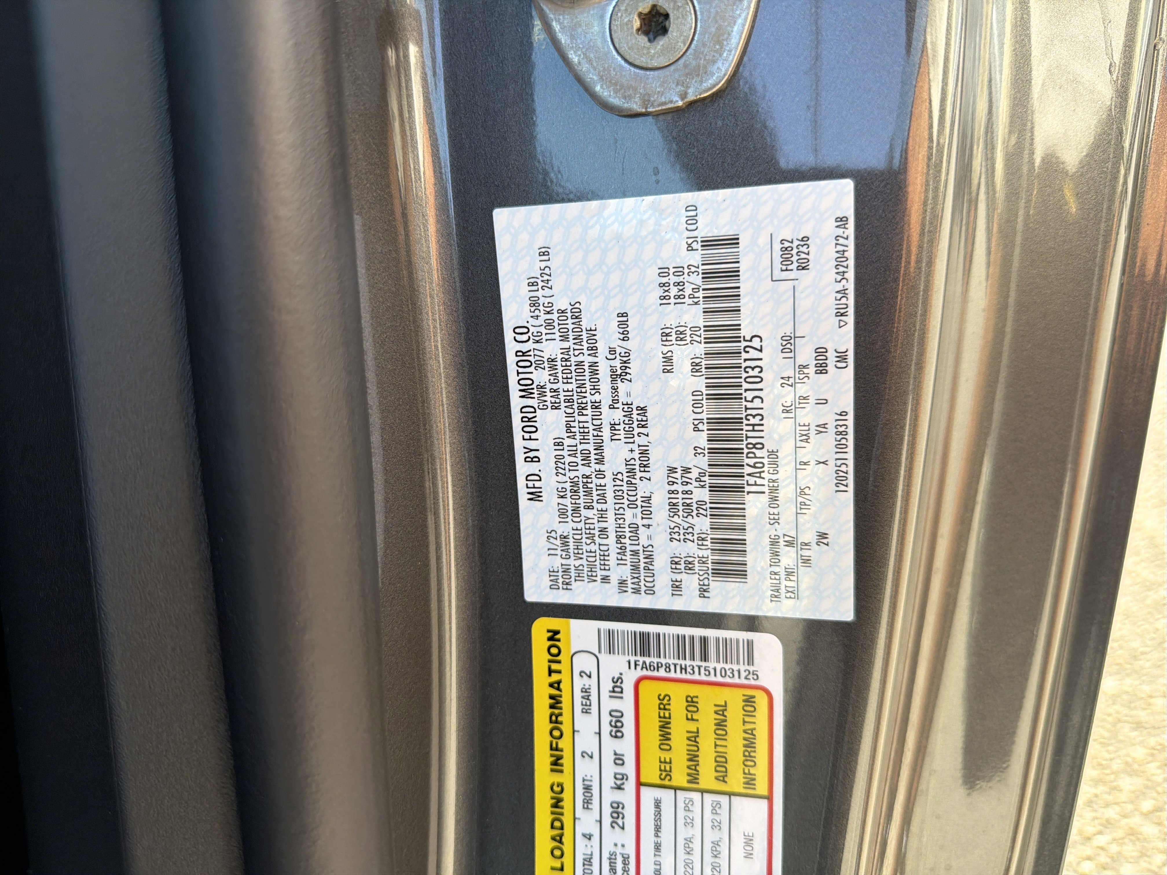• VIN # 1FA6P8TH3T5103125