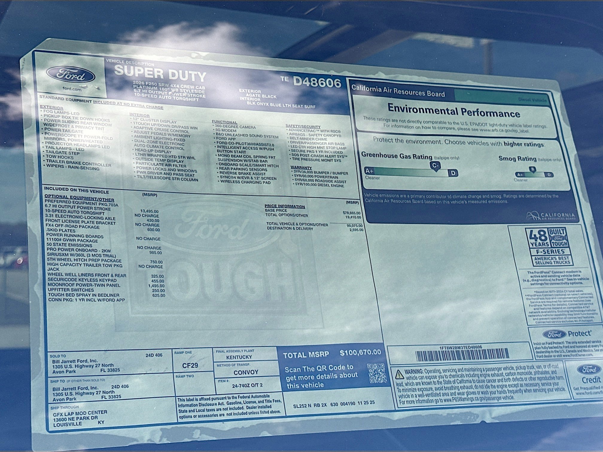 Agate Black Metallic 2026 Ford F-250SD Platinum 4WD 10-Speed Automatic 6.7L High Output Power Stroke V8 Diesel 4WD.