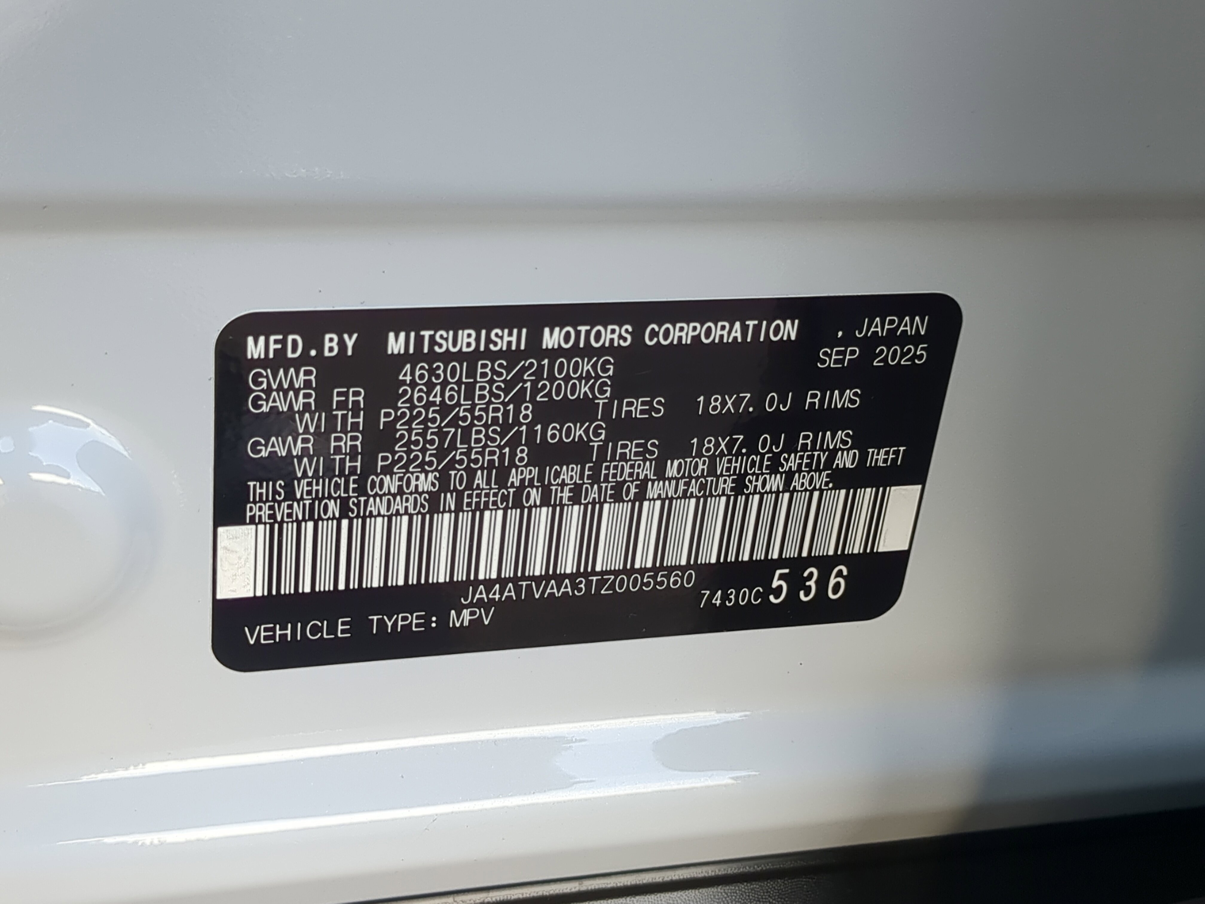 • VIN # JA4ATVAA3TZ005560