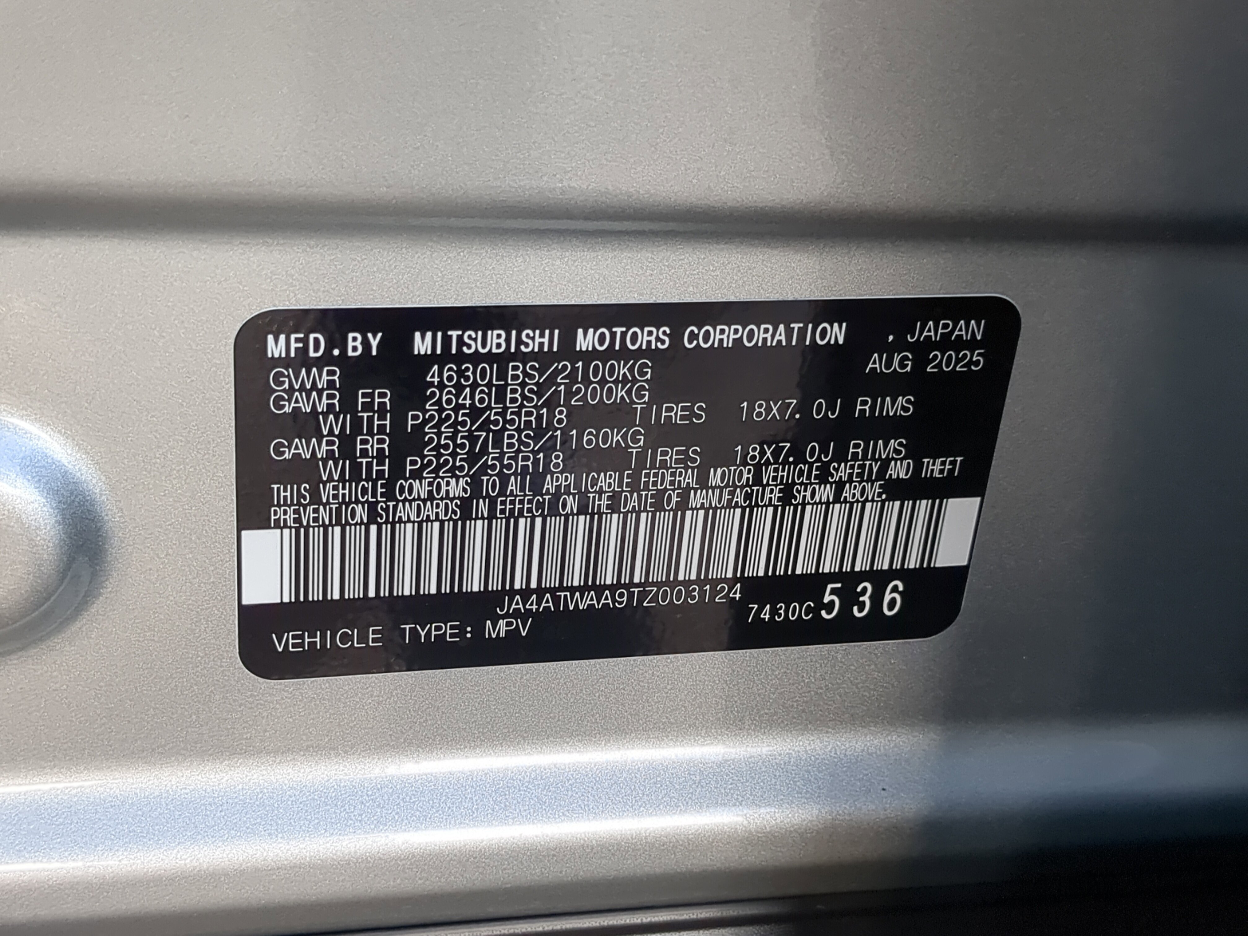 Silver 2026 Mitsubishi Eclipse Cross SE 4WD CVT 1.5L I4 DI Turbocharged DOHC 16V LEV3-ULEV125 152hp