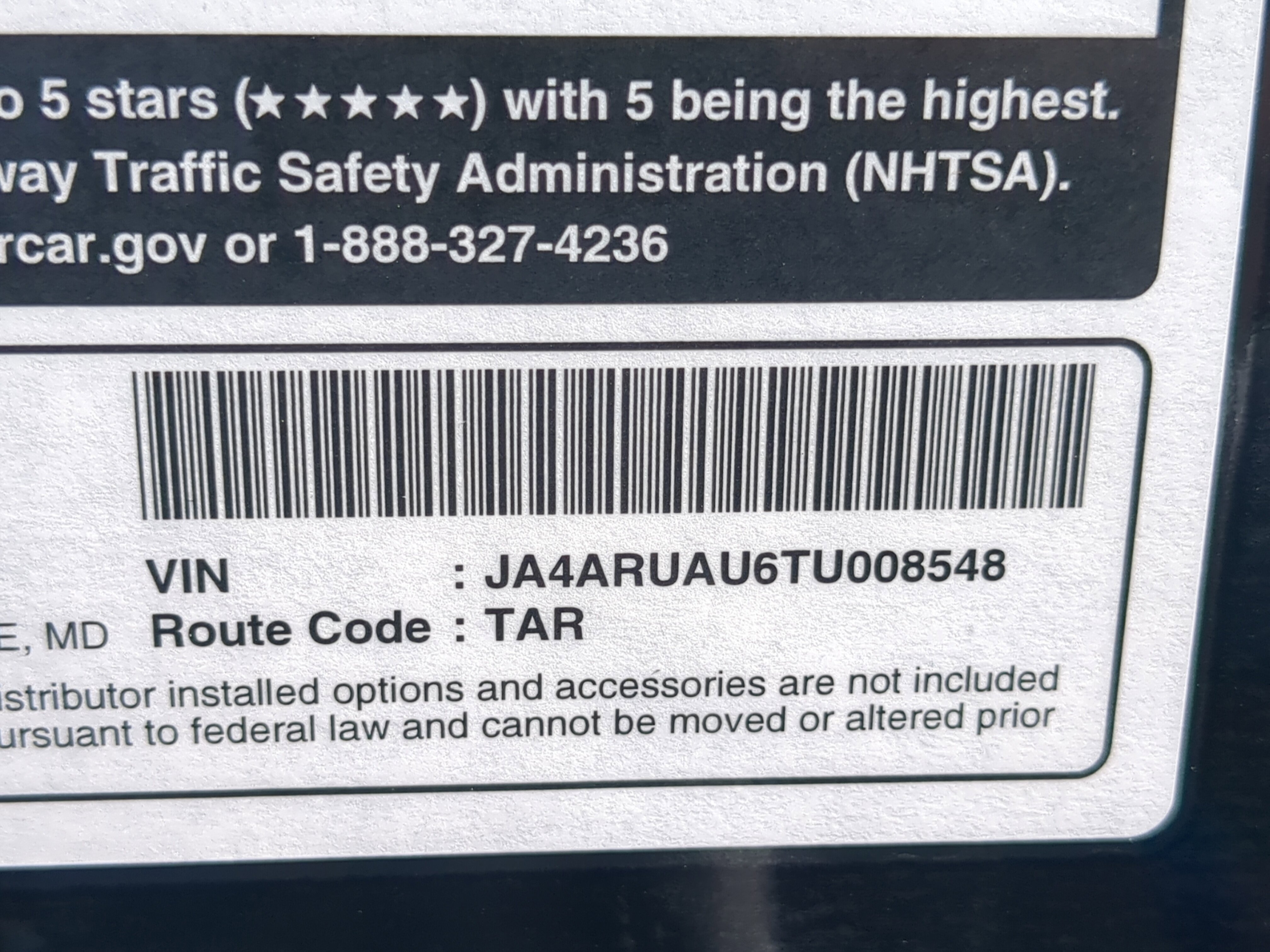 • VIN # JA4ARUAU6TU008548