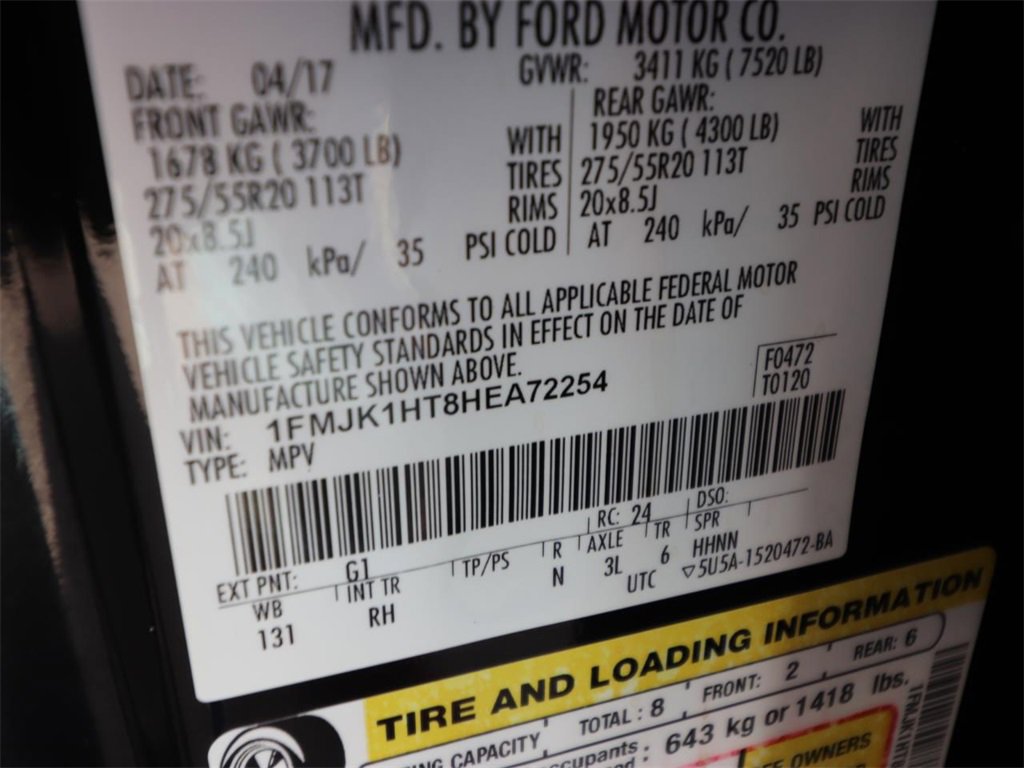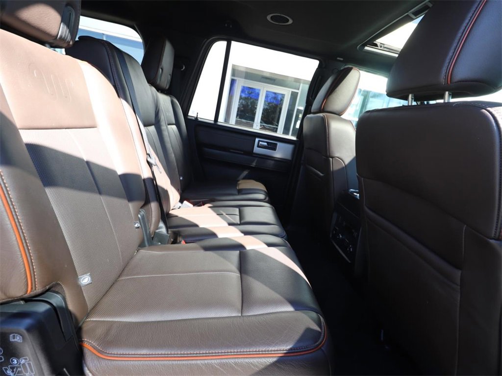 BIG SCREEN NAVIGATION!, ALLOY WHEELS, BACK UP CAMERA, BLUETOOTH, KEYLESS ENTRY, LEATHER SEATING, MOONROOF, THIRD ROW SEATING, ECOBOOST POWER, FULLY SERVICED! READY TO ROLL!, TRAILER TOW!, RELIABLE AS SUNRISE!, PLEASE SEE 1 OWNER FLAWLESS CARFAX!, ADULT OWNED, PRIDE IN OWNERSHIP SHOWS, DONT DELAY, HARD LOADED! CHECKS EVERY BOX!, (( FORD FACTORY SERVICED SUPER LOW MILE KING RANCH MAX! 30K CARFAX CERTIFIED ORIGINAL MILES! STUNNING EBONY/ MESA SADDLE LEATHER! TRAILER TOW! EL *LONG WHELL BASE* ROOMY THIRD ROW! ALL THE KING RANCH EXTRAS! TRANSPORTATION ASSISTANCE ANYWHERE! WE LOVE TRADES! PLEASE DONT DELAY ON THIS ONE! )), 3rd row seats: split-bench, 4-Wheel Disc Brakes, ABS brakes, Air conditioning, AM/FM radio: SiriusXM, AM/FM/CD RADIO, Automatic temperature control, Bumpers: body-color, Delay-off headlights, Dual front impact airbags, Dual front side impact airbags, Exterior Parking Camera Rear, Four wheel independent suspension, Front Bucket Seats, Front Center Armrest, Front fog lights, Fully automatic headlights, GVWR: 7,500 lbs Payload Package, Navigation System, Panic alarm, Power door mirrors, Power driver seat, Power Liftgate, Power Moonroof, Power steering, Power windows, Rear air conditioning, Rear window wiper, Remote keyless entry, Roof rack, Security system, Speed control, Speed-sensing steering, Speed-Sensitive Wipers, Split folding rear seat, Steering wheel mounted audio controls, Tachometer, Telescoping steering wheel, Tilt steering wheel, Traction control, Trip computer, Variably intermittent wipers, Voltmeter.