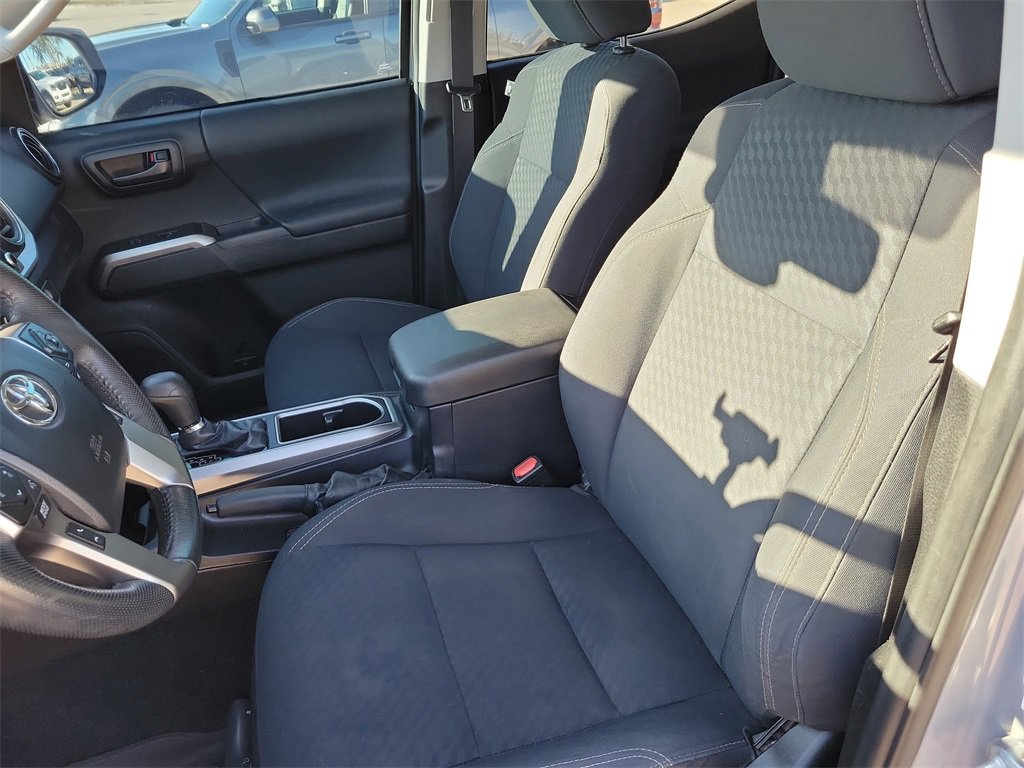 It's a 2021 Toyota Tacoma SR5 in Lunar Rock color. This V6 4WD pickup has only been lightly used - the odometer shows 3,207 miles less than average for this model year!