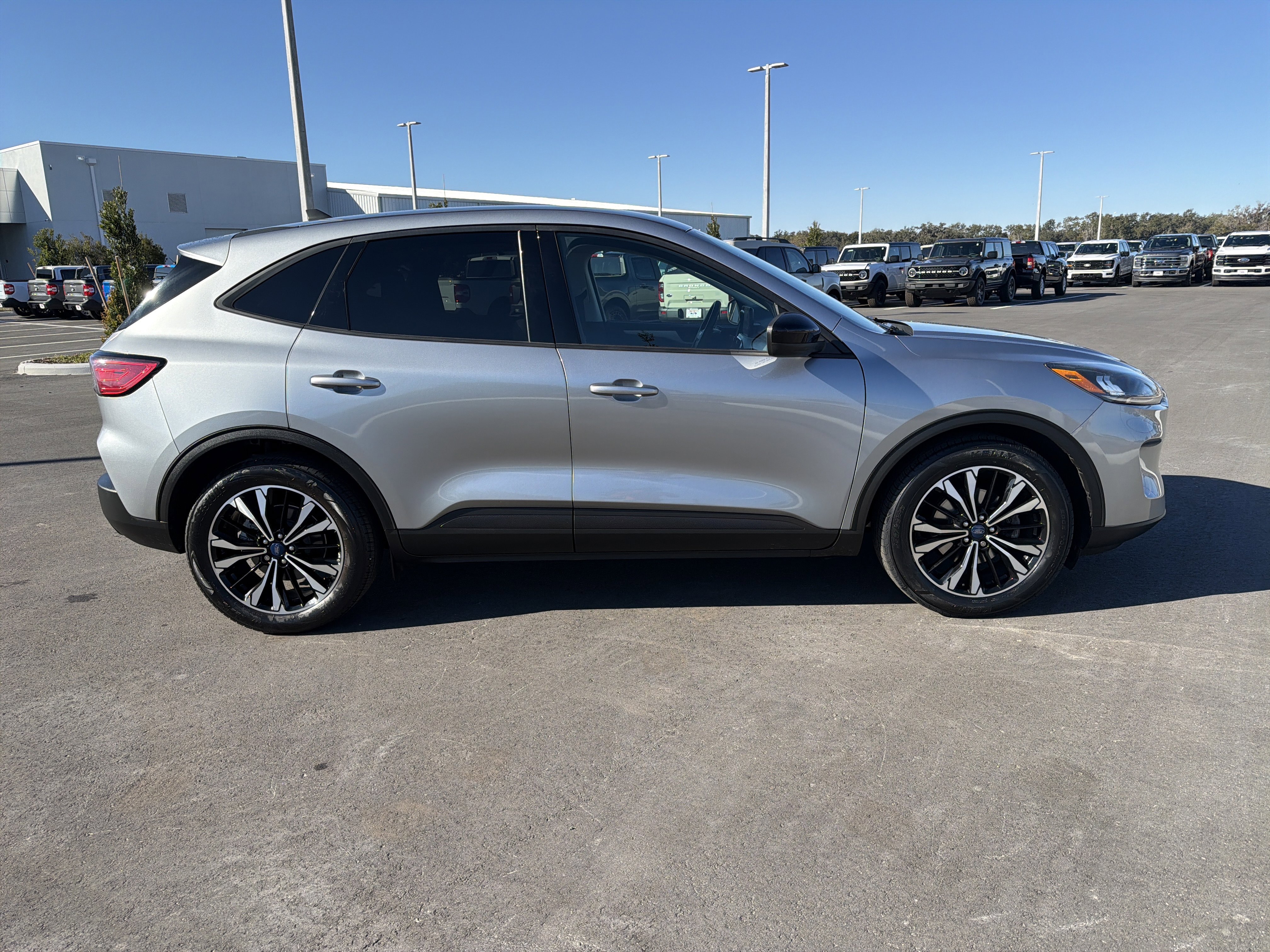 Iconic Silver Metallic 2022 Ford Escape SE FWD 8-Speed Automatic 1.5L EcoBoost BACK UP CAMERA, BEST PRICE, BEST SELECTION!, BLUETOOTH, 3.81 Axle Ratio, 4-Wheel Disc Brakes, 4G LTE Wi-Fi Hotspot Removal, 6 Speakers, 8-Way Power Driver Seat, ABS brakes, Air Conditioning, AM/FM radio: SiriusXM, AM/FM Stereo, Auto High-beam Headlights, Black Front & Rear Bumpers, Black Upper Window Molding w/Black Beltline Molding, Brake assist, Bumpers: body-color, Compass, Convenience Package, Delay-off headlights, Driver door bin, Driver vanity mirror, Dual front impact airbags, Dual front side impact airbags, Dual-Zone Electronic Automatic Temperature Control, Electronic Stability Control, Emergency communication system: SYNC 3 911 Assist, Equipment Group 200A, Exterior Parking Camera Rear, Fold-Down Rear Center Armrest w/2 Cupholders, FordPass Connect, Four wheel independent suspension, Front anti-roll bar, Front Bucket Seats, Front Center Armrest, Front reading lights, Fully automatic headlights, Gloss Black 5-Bar Upper Grille w/Chrome Surround, Halogen Projector Headlamps w/LED Signature, High Gloss Black Mirror Skull Caps, Illuminated entry, Knee airbag, Low tire pressure warning, Occupant sensing airbag, Outside temperature display, Overhead airbag, Overhead console, Panic alarm, Passenger door bin, Passenger vanity mirror, Power door mirrors, Power Liftgate, Power steering, Power windows, Radio data system, Rear anti-roll bar, Rear reading lights, Rear window defroster, Rear window wiper, Remote keyless entry, SE Sport Appearance Package, Speed control, Speed-sensing steering, Speed-Sensitive Wipers, Split folding rear seat, Spoiler, Steering wheel mounted audio controls, SYNC 3 Communications & Entertainment System, Tachometer, Telescoping steering wheel, Tilt steering wheel, Traction control, Trip computer, Unique Cloth Front Bucket Seats, Variably intermittent wipers, Wheels: 17 Shadow Silver-Painted Aluminum.