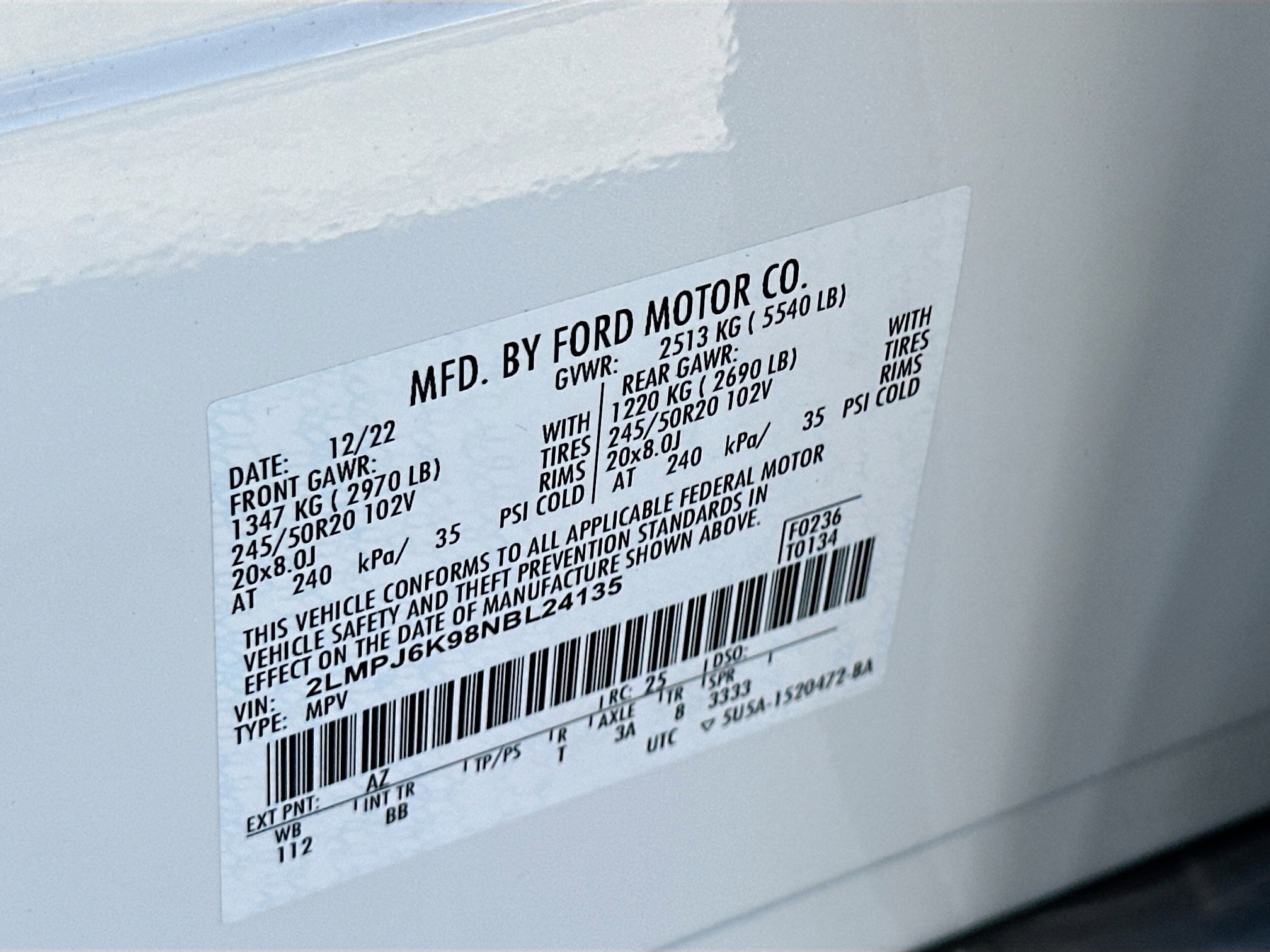 • VIN # 2LMPJ6K98NBL24135