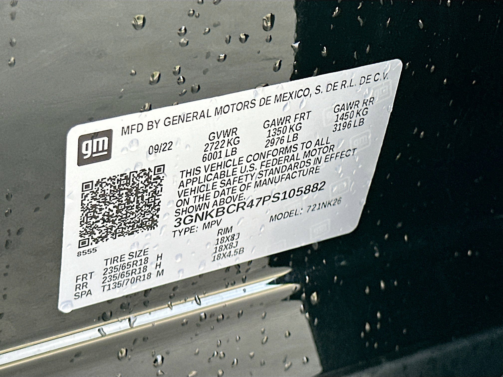 • VIN # 3GNKBCR47PS105882
