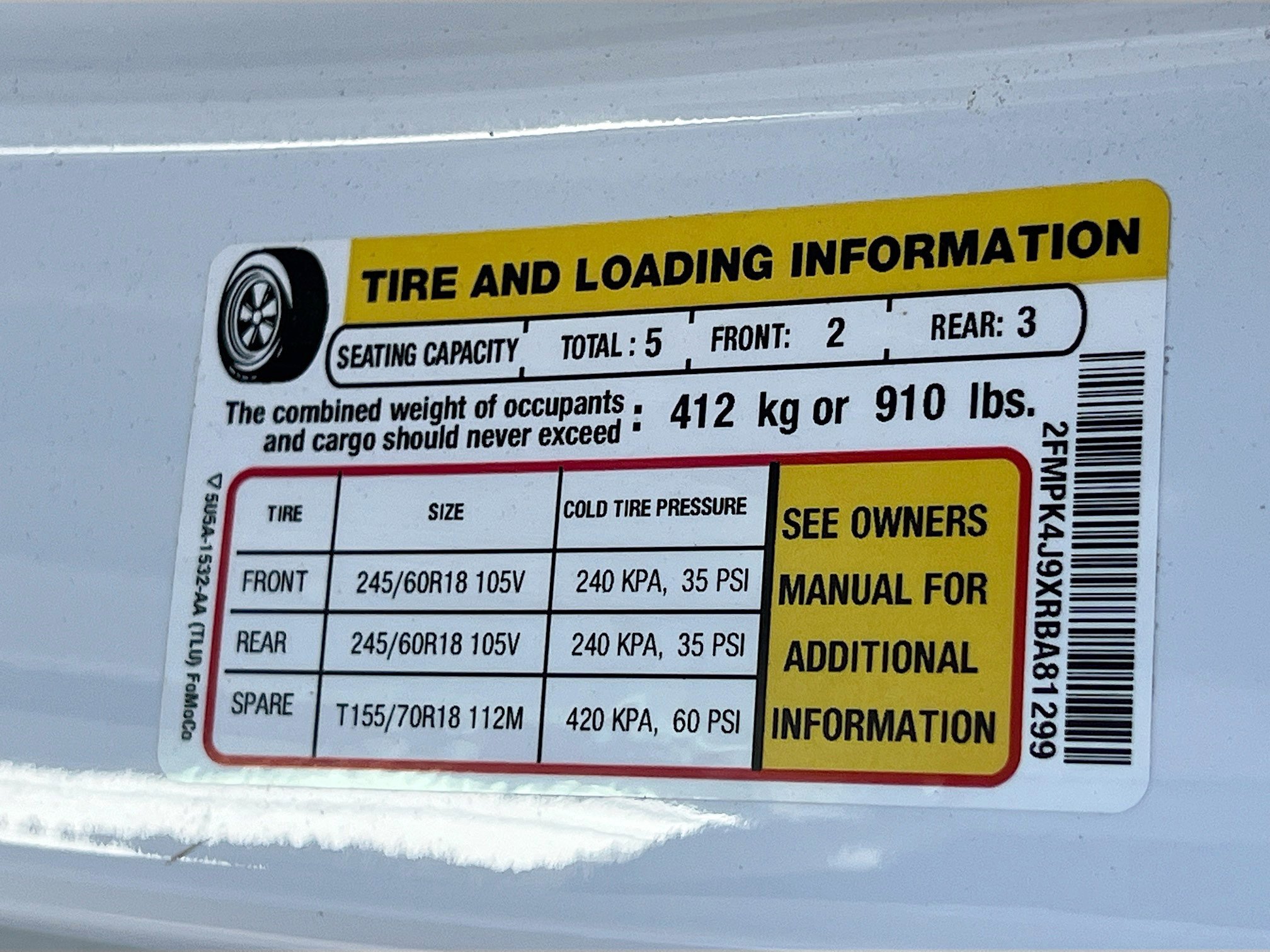• VIN # 2FMPK4J9XRBA81299