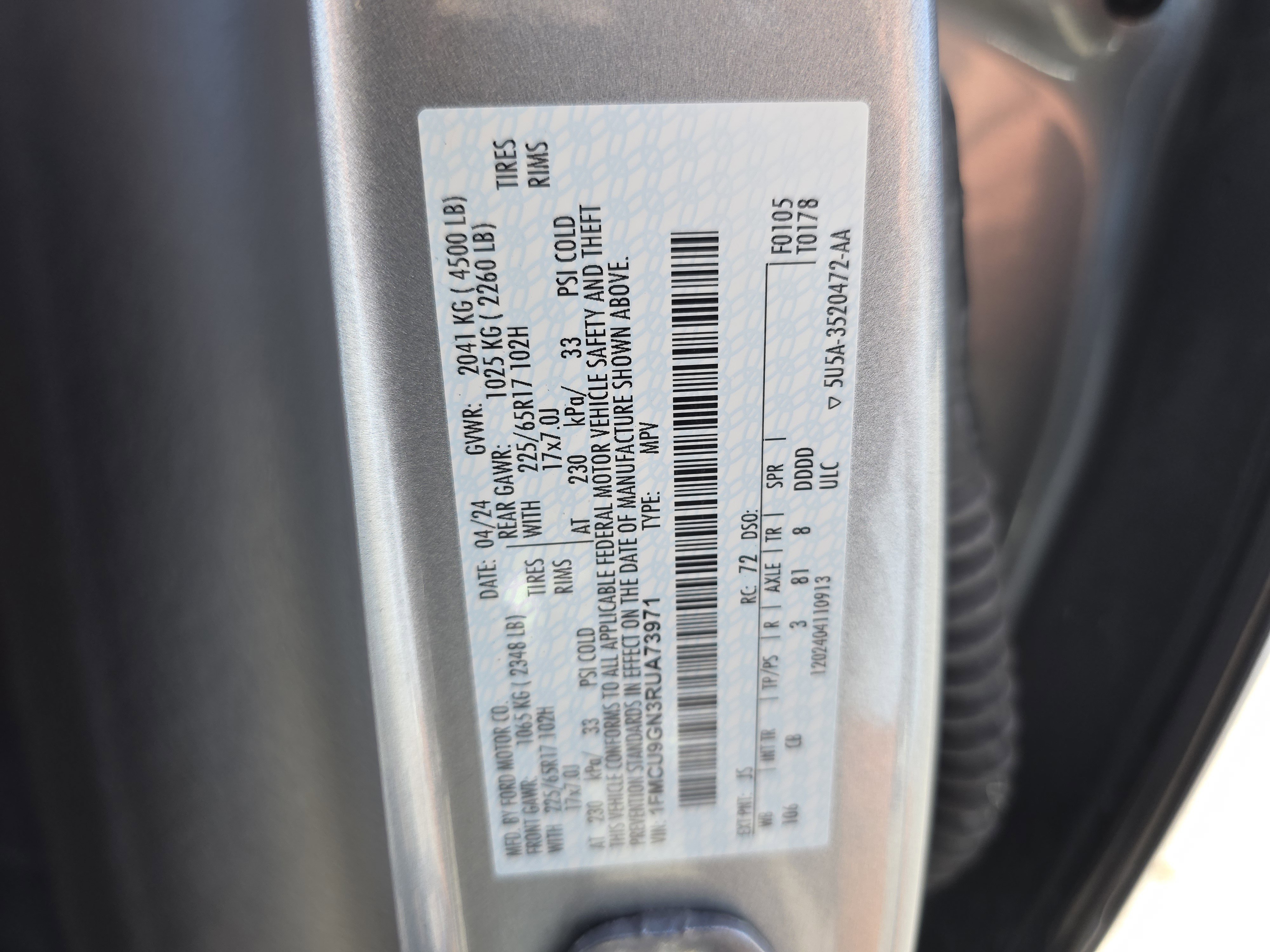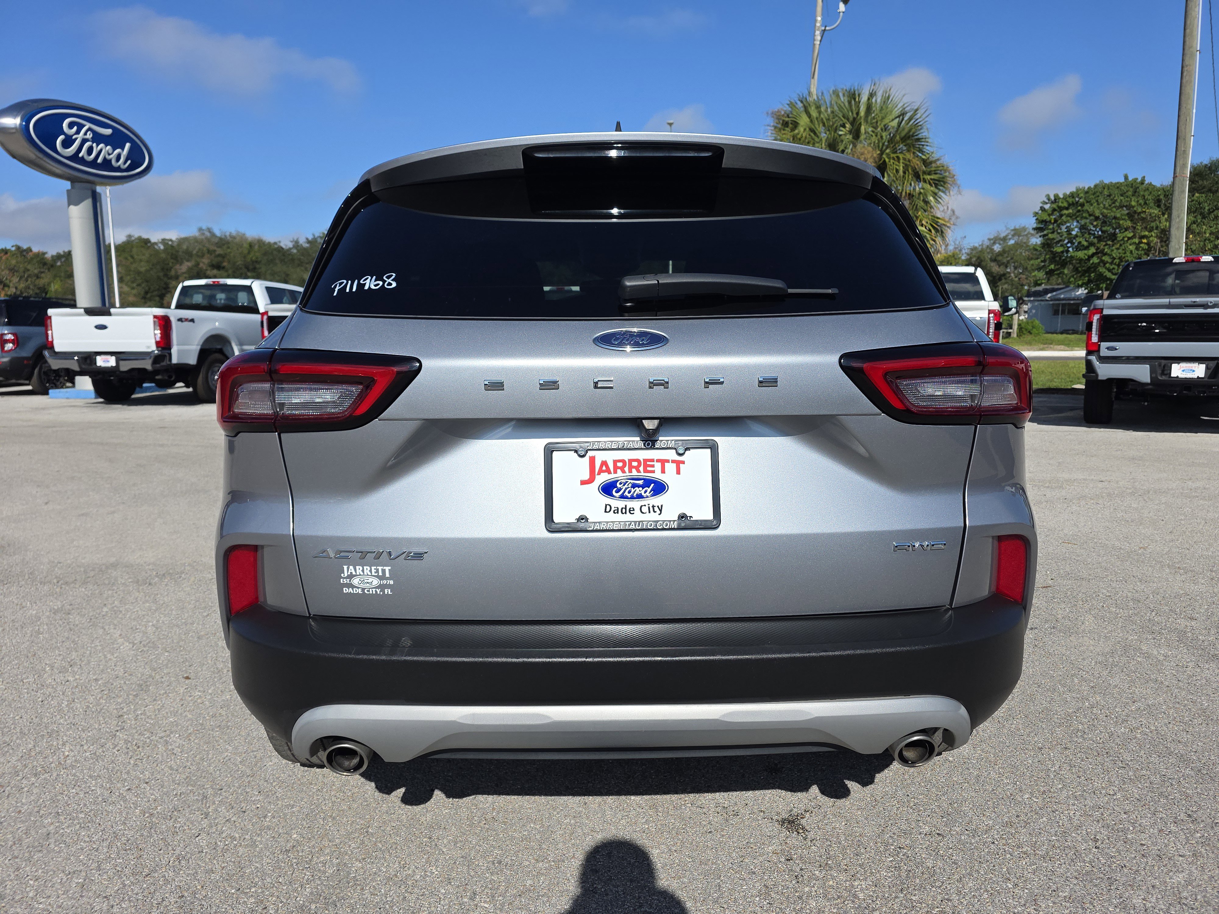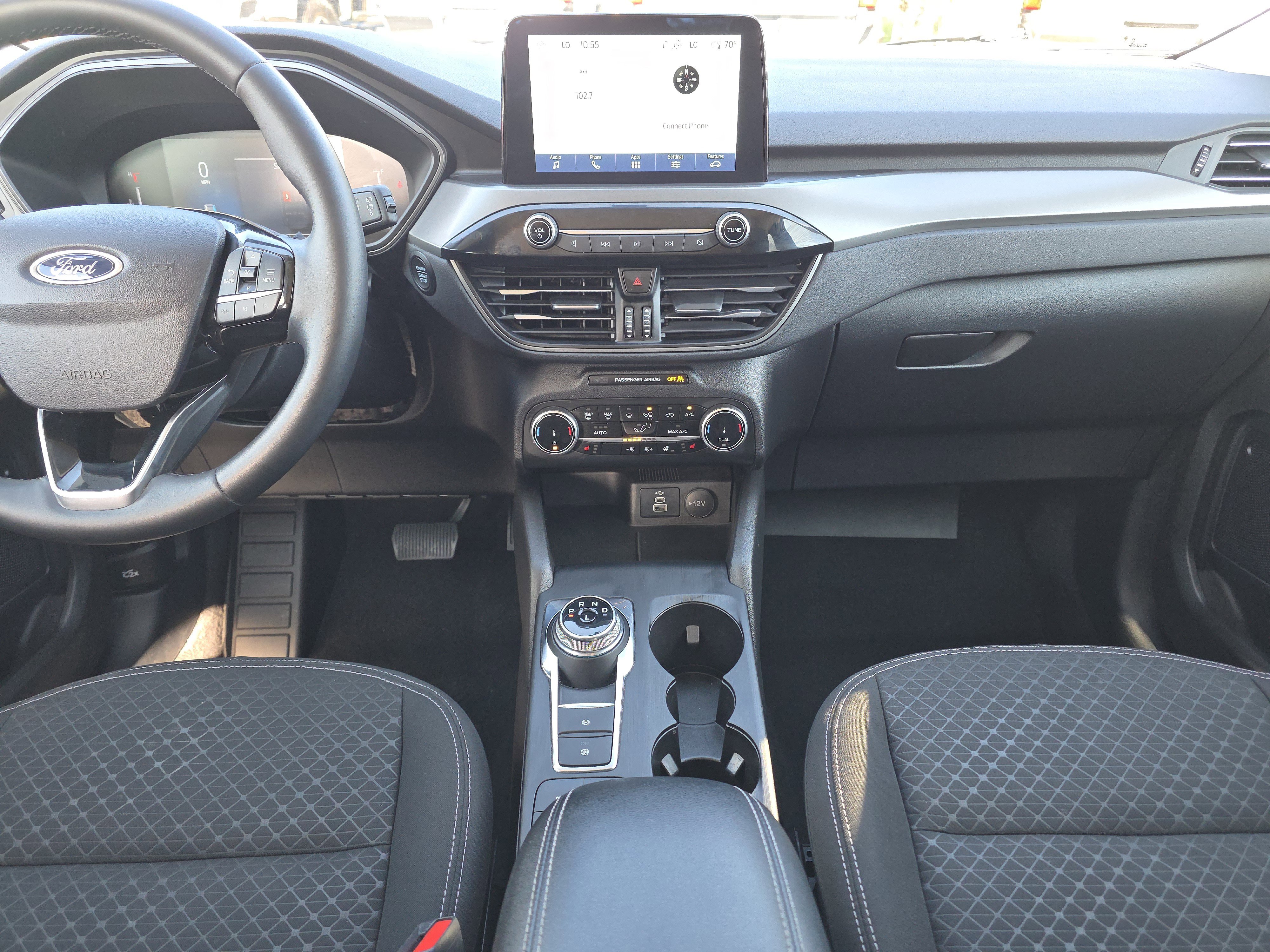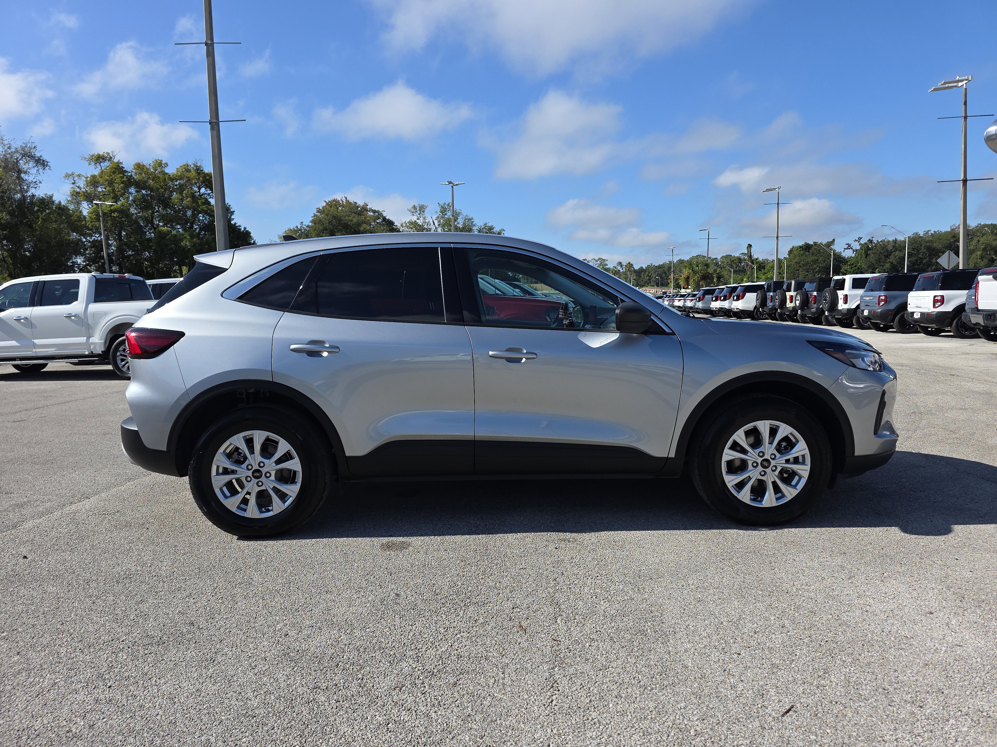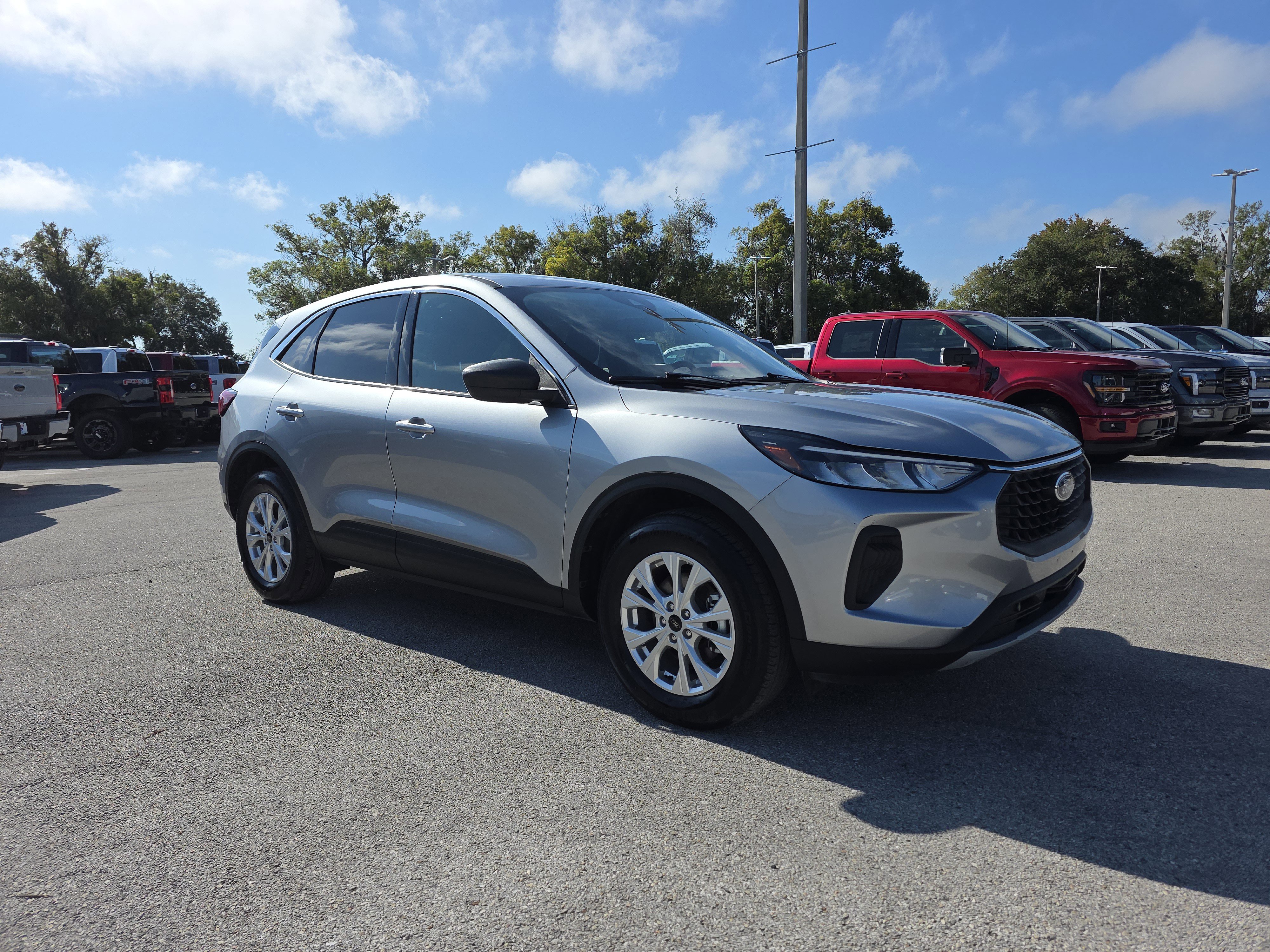 Silver Metallic 2024 Ford Escape Active AWD 8-Speed Automatic 1.5L EcoBoost AWD, 3.81 Axle Ratio, 4-Wheel Disc Brakes, 6 Speakers, ABS brakes, Air Conditioning, Alloy wheels, AM/FM radio: SiriusXM, Auto High-beam Headlights, Automatic temperature control, Bumpers: body-color, Cold Weather Package, Compass, Delay-off headlights, Driver door bin, Driver vanity mirror, Dual front impact airbags, Dual front side impact airbags, Emergency communication system: SYNC 4 911 Assist, Equipment Group 200A, Exterior Parking Camera Rear, FordPass Connect, Four wheel independent suspension, Front anti-roll bar, Front Bucket Seats, Front Center Armrest, Front dual zone A/C, Front reading lights, Fully automatic headlights, Heated Front Row Seats, Heated Sideview Mirrors, Heated Steering Wheel, Knee airbag, Low tire pressure warning, Occupant sensing airbag, Outside temperature display, Overhead airbag, Overhead console, Panic alarm, Passenger door bin, Passenger vanity mirror, Power door mirrors, Rear anti-roll bar, Rear reading lights, Rear seat center armrest, Rear window defroster, Rear window wiper, Remote Starter System, Speed control, Speed-sensing steering, Speed-Sensitive Wipers, Split folding rear seat, Spoiler, SYNC 4, Tachometer, Telescoping steering wheel, Tilt steering wheel, Traction control, Trip computer, Unique Cloth Front Bucket Seats, Variably intermittent wipers, Wheels: 17 Shadow Silver-Painted Aluminum.