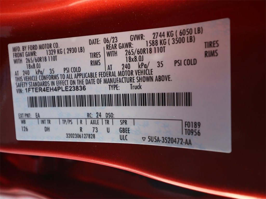 Chili Pepper Red 2023 Ford Ranger Lariat RWD 10-Speed Automatic EcoBoost 2.3L I4 GTDi DOHC Turbocharged VCT