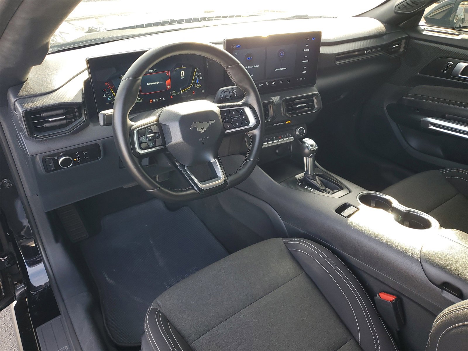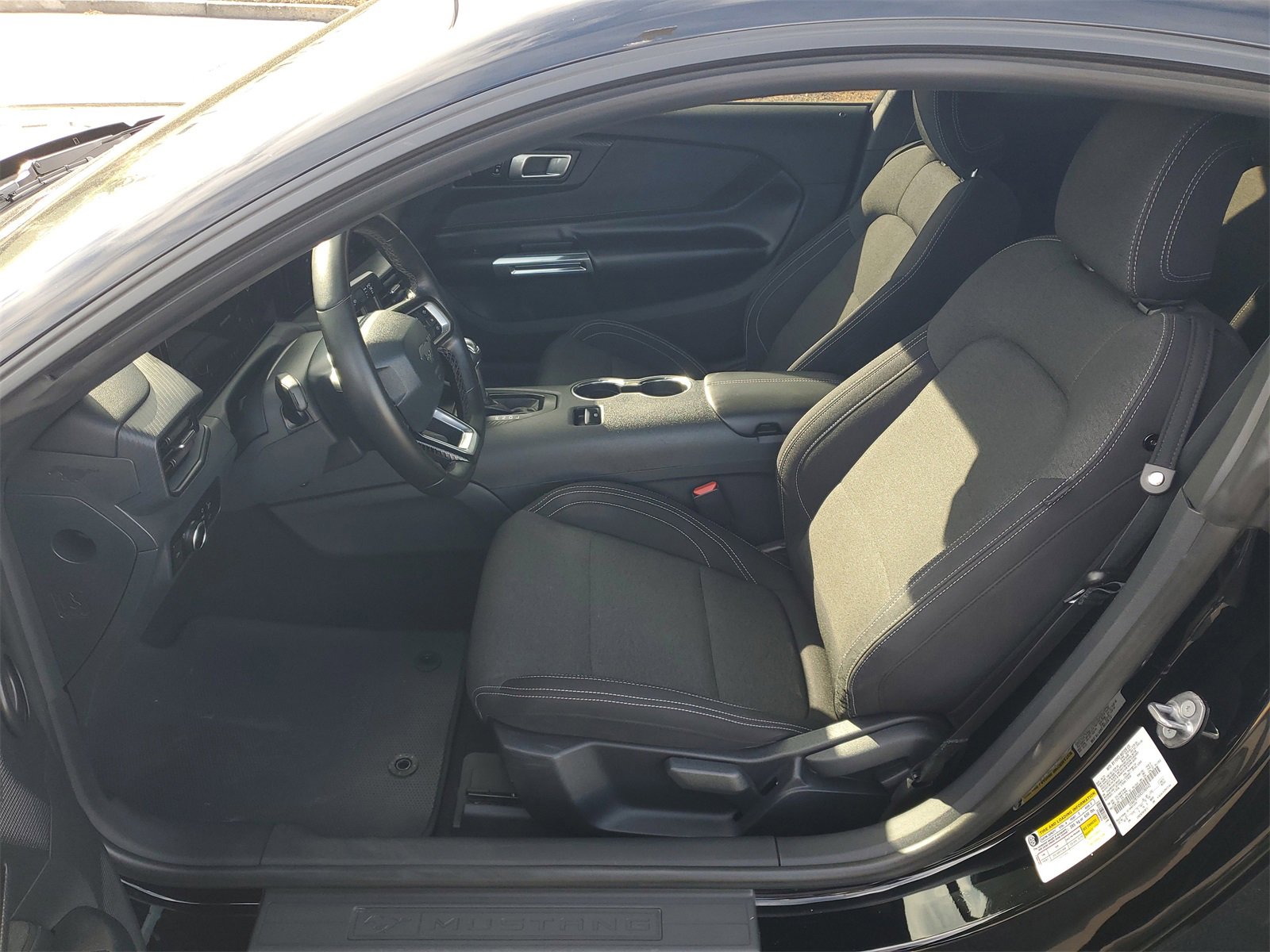 GOLD CERTIFIED, Ford Gold Certified Certified, 4-Wheel Disc Brakes, ABS brakes, Air Conditioning, Alloy wheels, AM/FM Stereo, Auto High-beam Headlights, Automatic temperature control, Black Front & Rear Pony Badges, Black Mirror Caps, Brake assist, Bumpers: body-color, Compass, Delay-off headlights, Driver door bin, Driver vanity mirror, Dual front impact airbags, Dual front side impact airbags, Electronic Stability Control, Emergency communication system: 911 Assist, Exterior Parking Camera Rear, Four wheel independent suspension, Front anti-roll bar, Front Bucket Seats, Front Center Armrest, Front reading lights, Fully automatic headlights, Headlamps w/Black Bezels, Illuminated entry, Knee airbag, Leather Shift Knob, Low tire pressure warning, Mustang Nite Pony Package, Occupant sensing airbag, Outside temperature display, Overhead airbag, Overhead console, Painted Black Roof, Panic alarm, Passenger door bin, Passenger vanity mirror, Power door mirrors, Power steering, Power windows, Radio data system, Rain sensing wipers, Rear anti-roll bar, Rear Parking Sensors, Rear window defroster, Remote keyless entry, Shadow Black Blade Decklid Spoiler, Speed control, Speed-sensing steering, Speed-Sensitive Wipers, Split folding rear seat, Sport steering wheel, Steering wheel mounted audio controls, SYNC 4.0 QNX, Tachometer, Telescoping steering wheel, Tilt steering wheel, Traction control, Trip computer, Variably intermittent wipers, Voltmeter, Wheels: 18 x 8 Machined-Face Aluminum.