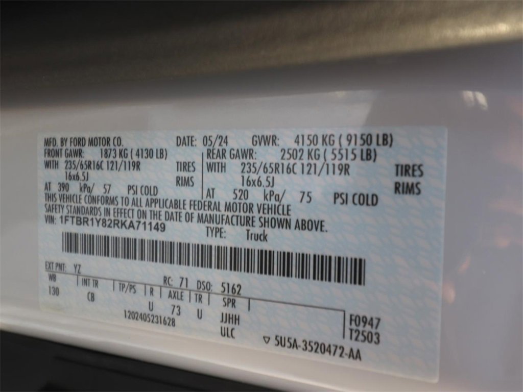 Oxford White 2024 Ford Transit-250 Base RWD 10-Speed Automatic with Overdrive 3.5L V6 Flex Fuel