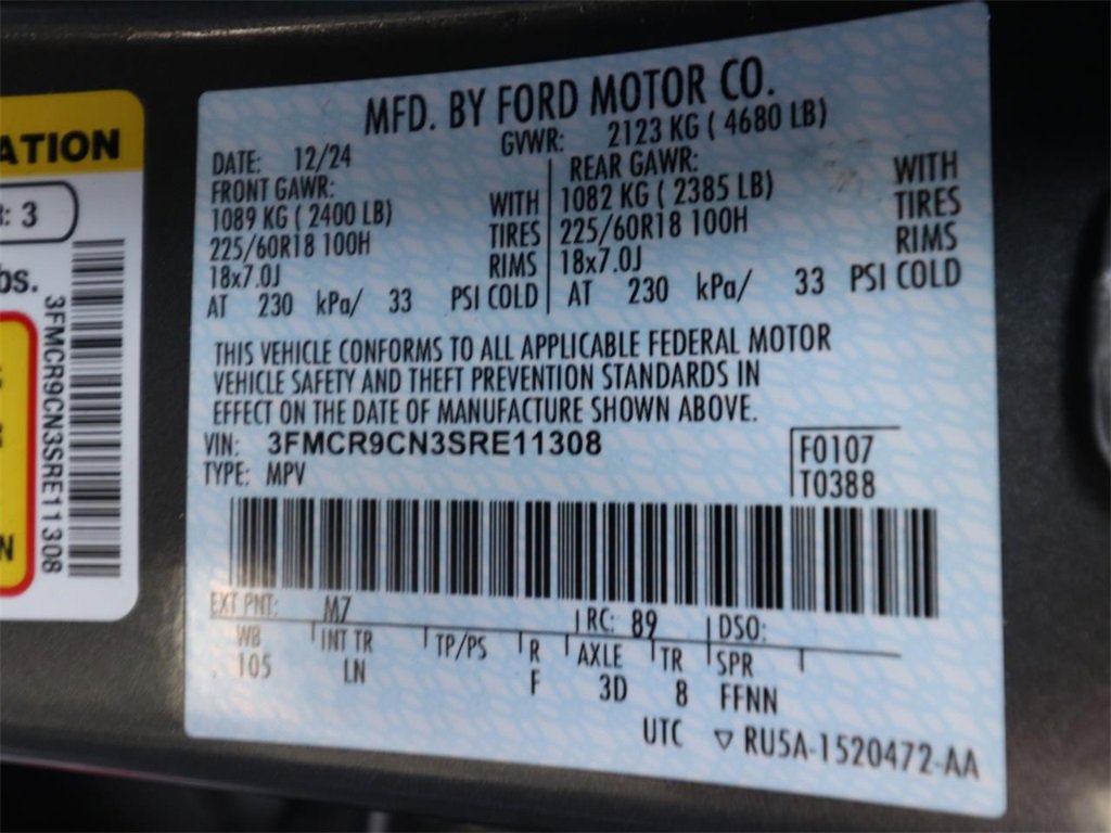 BIG SCREEN NAVIGATION!, ALLOY WHEELS, BACK UP CAMERA, BLUETOOTH, KEYLESS ENTRY, BEST PRICE, BEST SELECTION!, ECOBOOST POWER, FORD PASS CONNECT, REMAINDER OF FACTORY WARRANTY!, FORD FACTORY CERTIFIED PROTECTION, INTERIOR UPFIT CARGO PACKAGE!, FORD DEALER SERVICED! FORD CERTIFIED!, BEST SELECTION! CERTIFIED PROTECTION!, RELIABLE AS SUNRISE!, PLEASE SEE 1 OWNER FLAWLESS CARFAX!, RECON INCLUDED NO HIDDEN FEES!, FORD CERTIFIED PROTECTION GOOD ANYWHERE IN THE USA!, ADULT OWNED, PRIDE IN OWNERSHIP SHOWS, DONT DELAY, FREE FACTORY CERTIFIED PROTECTION! ONLY AT JARRETT SCOTT!, APPLE CAR PLAY!, (( NEW BODY STYLE! SUPER LOW MILES! GREAT COLOR COMBO! ECONOMICAL AND A BLAST TO DRIVE! )), 4-Wheel Disc Brakes, 6 Speakers, ABS brakes, Air conditioning, AM/FM radio: SiriusXM, AM/FM/CD RADIO, Auto High-beam Headlights, Automatic temperature control, B&O Sound System by Bang & Olufsen, Brake assist, Connected Navigation, Delay-off headlights, Dual front impact airbags, Dual front side impact airbags, Electronic Stability Control, Equipment Group 300A, Four wheel independent suspension, Front Bucket Seats, Front Center Armrest, Front dual zone A/C, Front fog lights, Fully automatic headlights, HD Radio, Memory seat, Outer Banks Tech Package+, Panic alarm, Power door mirrors, Power driver seat, Power passenger seat, Power steering, Power windows, Rain sensing wipers, Rear window defroster, Rear window wiper, Remote keyless entry, Security system, Speed control, Speed-Sensitive Wipers, Split folding rear seat, Steering wheel mounted audio controls, SYNC 4 w/Enhanced Voice Recognition, Tachometer, Telescoping steering wheel, Tilt steering wheel, Traction control, Trip computer, Variably intermittent wipers, Wheels: 18" Ebony Black-Painted Aluminum.