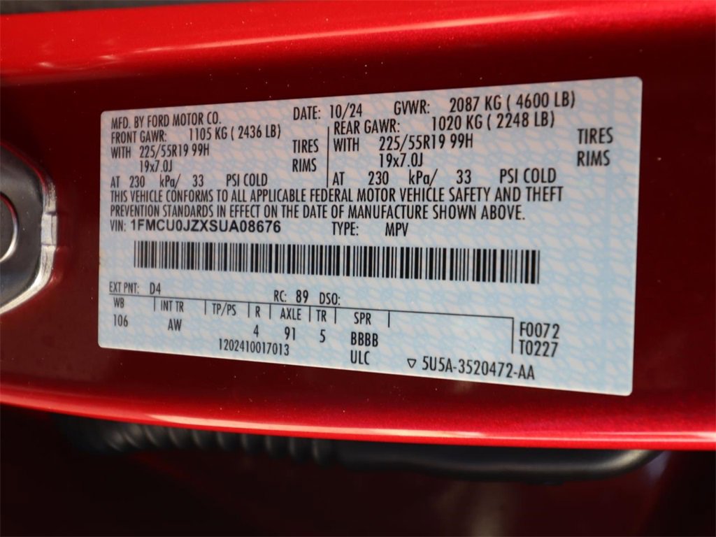 BIG SCREEN NAVIGATION!, ALLOY WHEELS, BACK UP CAMERA, BLUETOOTH, KEYLESS ENTRY, LEATHER SEATING, REMAINDER OF FACTORY WARRANTY!, FORD FACTORY CERTIFIED PROTECTION, BEST SELECTION! CERTIFIED PROTECTION!, PLEASE SEE 1 OWNER FLAWLESS CARFAX!, RECON INCLUDED NO HIDDEN FEES!, FORD CERTIFIED PROTECTION GOOD ANYWHERE IN THE USA!, ADULT OWNED, PRIDE IN OWNERSHIP SHOWS, DONT DELAY, APPLE CAR PLAY!, (( ECONOMICAL TO OWN! AND A BLAST TO DRIVE! )), 2.5L iVCT, 360-Degree Camera w/Split View, 4-Wheel Disc Brakes, 6 Speakers, Air conditioning, AM/FM radio: SiriusXM, AM/FM Stereo, AM/FM/CD RADIO, Auto High-beam Headlights, Automatic temperature control, Brake assist, Bumpers: body-color, Compass, Delay-off headlights, Driver door bin, Driver vanity mirror, Dual front impact airbags, Dual front side impact airbags, Electronic Fuel Door Release, Electronic Stability Control, Equipment Group 600A, FordPass Connect, Four wheel independent suspension, Front anti-roll bar, Front Bucket Seats, Front Center Armrest, Front dual zone A/C, Front fog lights, Front Parking Sensors, Fully automatic headlights, HD Radio, Head-Up Display, Heated ActiveX-Trimmed Front Sport Contour Seats, Heated front seats, Knee airbag, Low tire pressure warning, Navigation system: Connected Navigation, Neutral Towing Capability, Occupant sensing airbag, Panic alarm, Pedestrian Alert Sounder, Power door mirrors, Power driver seat, Power Liftgate, Power passenger seat, Power steering, Power windows, Premium Technology Package, Radio: B&O Sound System by Bang & Olufsen, Remote keyless entry, Reverse Brake Assist, Security system, Speed control, Speed-sensing steering, Split folding rear seat, Steering wheel mounted audio controls, SYNC 4 w/Enhanced Voice Recognition, Tachometer, Telescoping steering wheel, Tilt steering wheel, Traction control, Trip computer.